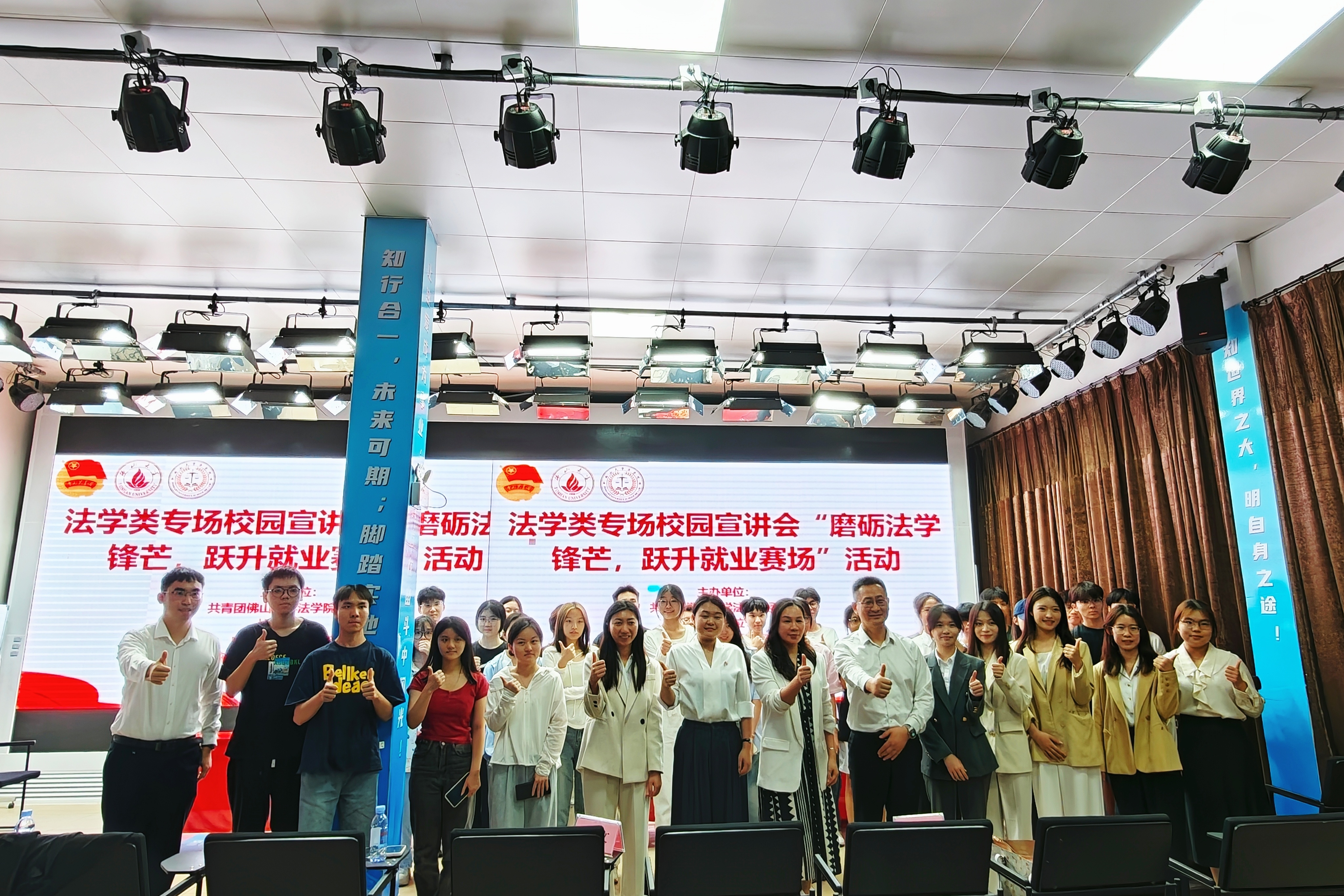 为进一步落实大学生就业引航计划,帮助法学专业毕业生明晰当前就业形势,提前做好充分的就业准备,提升求职竞争力,4月23日下午2点,法学院在江湾校区创业谷路演厅举办“磨砺法学锋芒,跃升就业赛场”法学类专场校园宣讲会,活动由共青团佛山大学法学院委员会主办,由广东源浩律师事务所、广东知恒(佛山)律师事务所、佛山市校园就业创业e站协办,活动分为律所介绍、简历培训、律师职业发展规划、模拟面试等多个环节,为怀揣法律梦想的学子们呈上了一场内容丰富、实用性强的校园宣讲会。