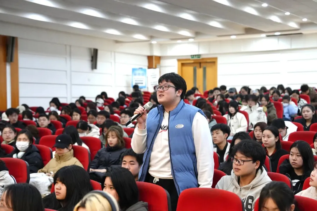 许凯老师通过提出“重返校园时候的心情?”“新学期的心愿或计划有哪些?”等问题,引导学生分享他们的“开学”体验,调动了同学们的积极性。接着,许老师指出春季学期学生常见的抑郁、烦躁等心理健康困惑,并详细介绍了相应的身体、情绪、行为方面的具体表现,帮助大家更好地认识和识别心理问题,提高学生自我调适能力。许老师重点分享了学会积极地调整、正面暗示、“SWTC”情绪调节法、适度的运动饮食调整、按摩穴位等实用可行的心理调适方法,为同学们呈现了一场生动精彩的心理健康讲座。授课期间,许老师还带领大家现场体验了音乐放松疗法,缓解同学们焦虑紧张的情绪。整场授课过程互动性强,引人入胜,反响热烈。