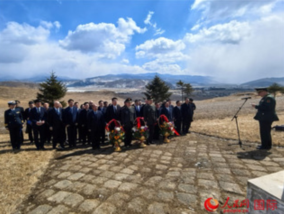 今年是中国人民志愿军抗美援朝出国作战75周年。3月30日,在清明节即将到来之际,中国驻朝鲜大使王亚军率中国驻朝鲜使馆、驻清津总领馆全体馆员、在朝中资机构和媒体代表、旅朝华侨代表等近60人赶赴咸镜南道长津郡,祭扫长津邑、新兴里中国人民志愿军烈士陵园,向长津郡下碣隅里杨根思烈士纪念碑敬献花篮,祭奠缅怀在长津湖战役中牺牲的中国人民志愿军英烈。