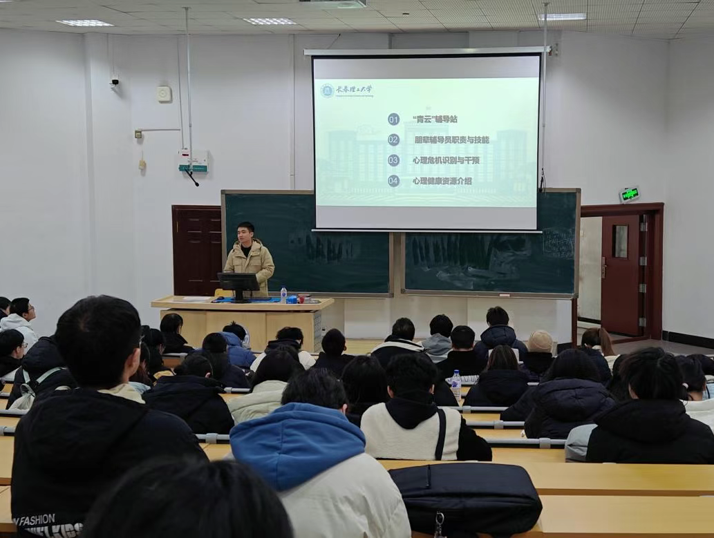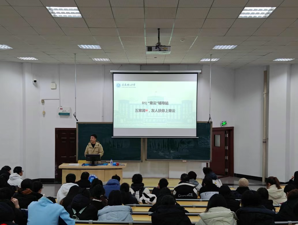 姜云龙首先介绍了学院心理辅导站:“青云”辅导站。辅导站力图帮助同学们妥善解决在学业、生活及情感等多个维度可能遭遇的心理困惑与挑战,旨在提升学生的心理健康水平,有效预防心理危机,从而为学生的全面健康发展提供坚实保障。