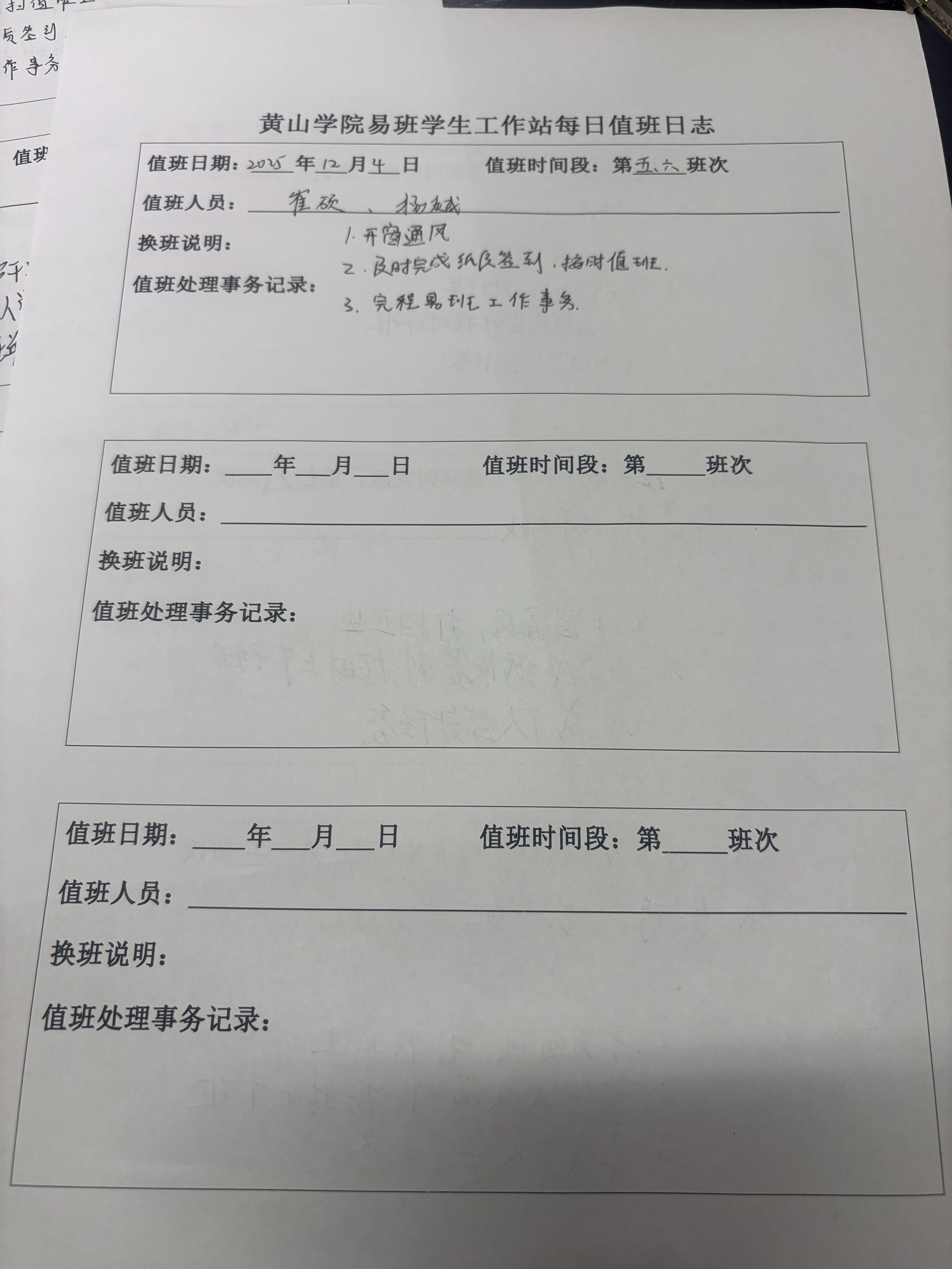 1.基础事务工作完成情况:开窗通风,打扫值班室卫生。