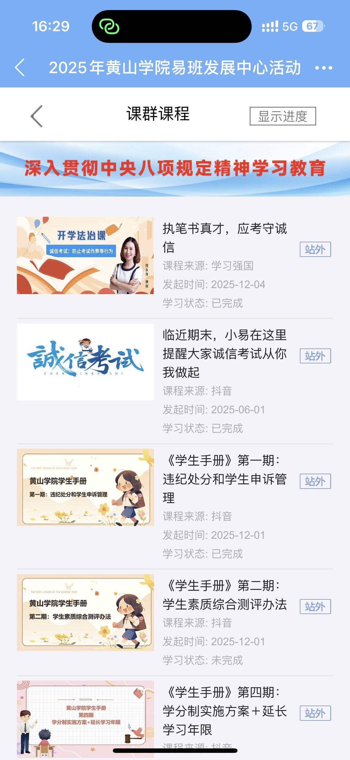 (1)易班优课:浏览《执笔书真才,应考守诚信》课程;
