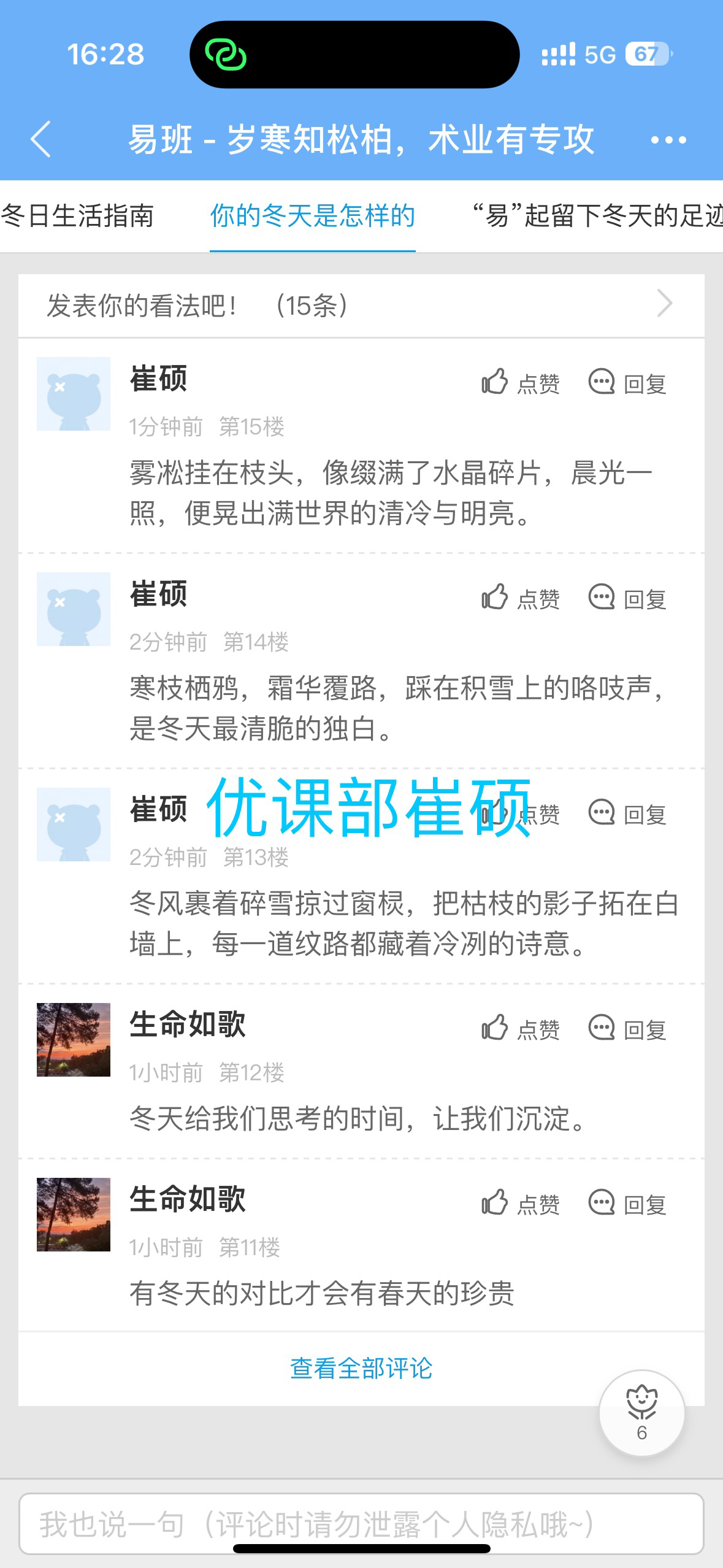 (2)轻应用:对“诸业绘冬意”轻应用学习、积极留言3条;
