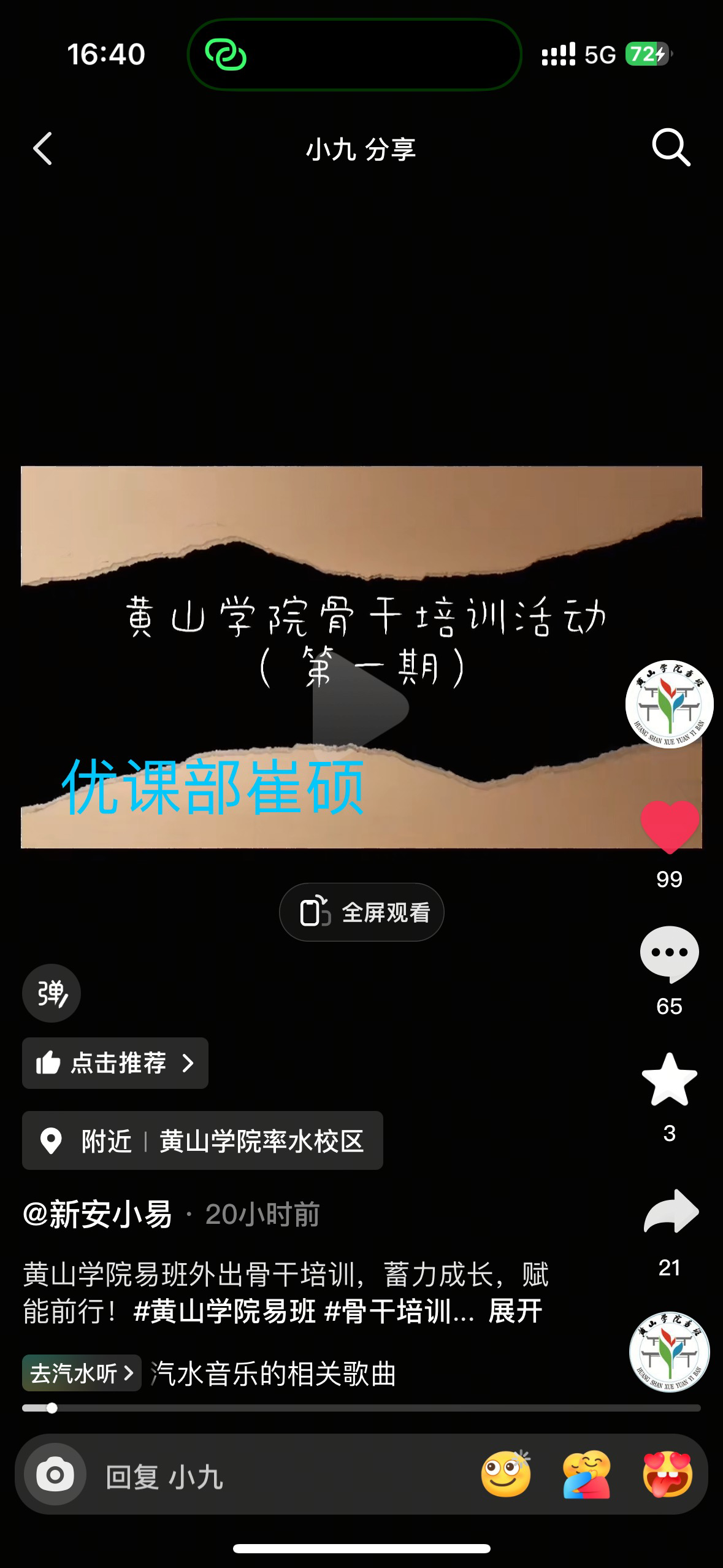 (6)新安小易:点赞评论并转发"骨干培训活动"的抖音视频。
