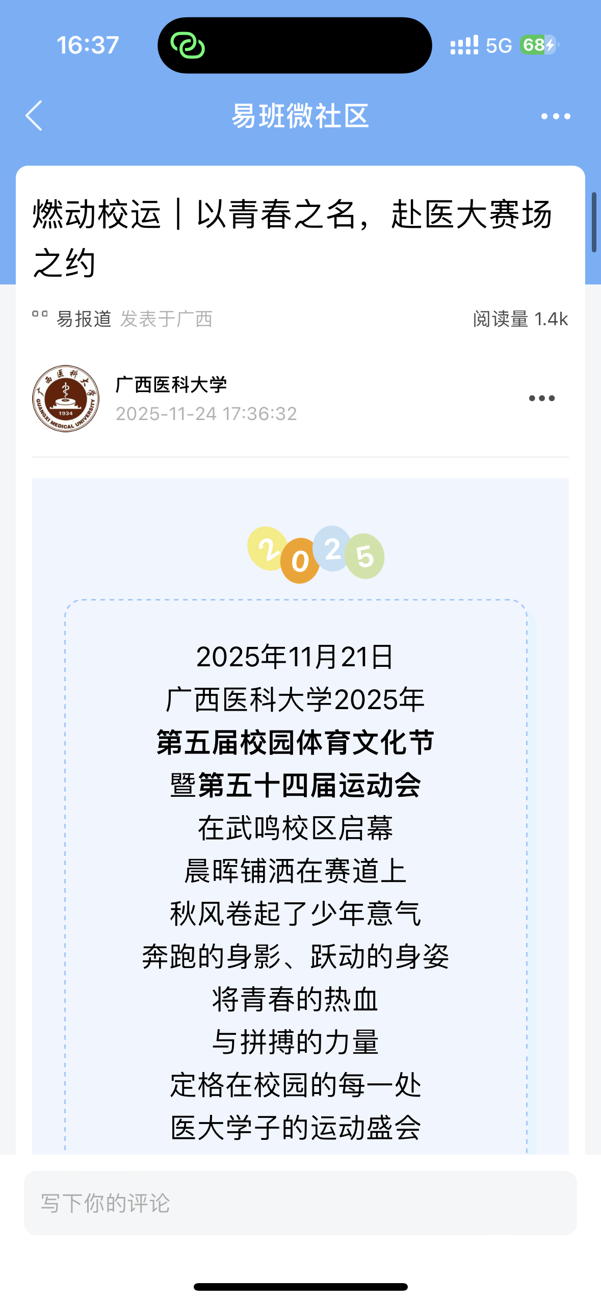 (4)易班头条:浏览“以青春之名,赴医大赛场之约”活动