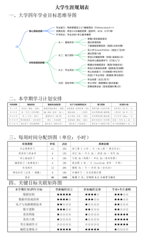 “没有规划的努力,是盲目的奔跑”,优秀规划作品里,既有“专业课优先级排序”“证书备考时间线”的务实安排,也有“考研目标院校拆解”“就业技能储备”的长远布局。同学们用清晰的思路,把“大学四年”变成了步步可及的成长路径。