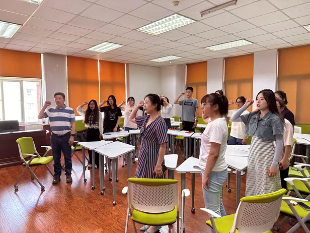 最后,全体线上和线下的党员共同起立宣誓,重温入党誓词:“我志愿加入中国共产党,拥护党的纲领,遵守党的章程……”。全体党员面向鲜红党旗,举起右拳,重温入党誓词,铭记入党初衷,表达了做合格共产党员、为共产主义奋斗终身的坚定信仰。全体党员在重温入党誓词中纷纷感悟到誓词字里行间蕴含的沉甸甸的责任,庄严的承诺和坚定的信心。