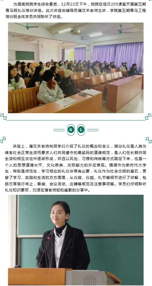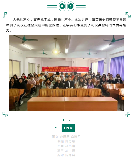 蒲苡禾:组织第五期青马班礼仪培训讲座