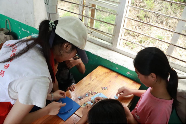 上午9时,宣讲活动在联合村小学教室拉开帷幕。志愿者们以“两弹一星”精神为核心,通过短视频、故事讲述等方式,向孩子们介绍了钱学森、邓稼先等科学家的感人事迹。宣讲团成员结合历史背景,生动阐释了“热爱祖国、无私奉献,自力更生、艰苦奋斗,大力协同、勇于登攀”的“两弹一星”精神内涵。为增强参与感,宣讲活动将理论与实践相结合,特别设置了“两弹一星”主题拼图比赛和手绘文创环节,通过宣讲团成员指导学生们共同动手,将“两弹一星”与当代航天成就结合,在实践活动中引导孩子们了解科技报国的意义。