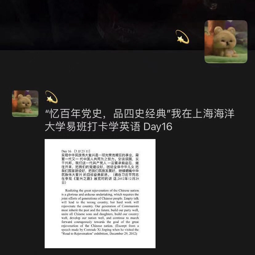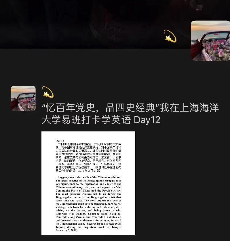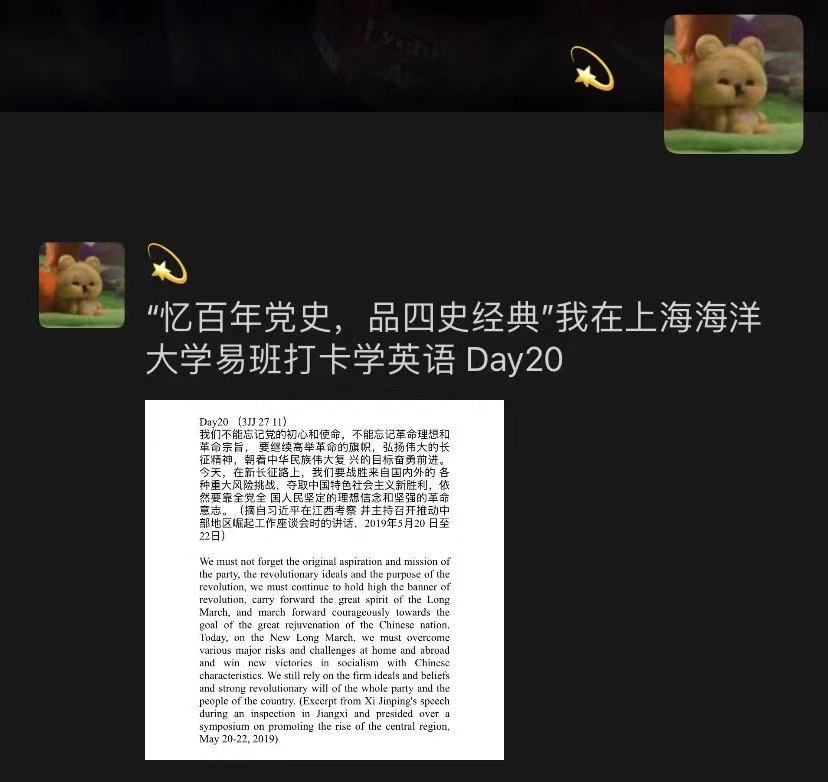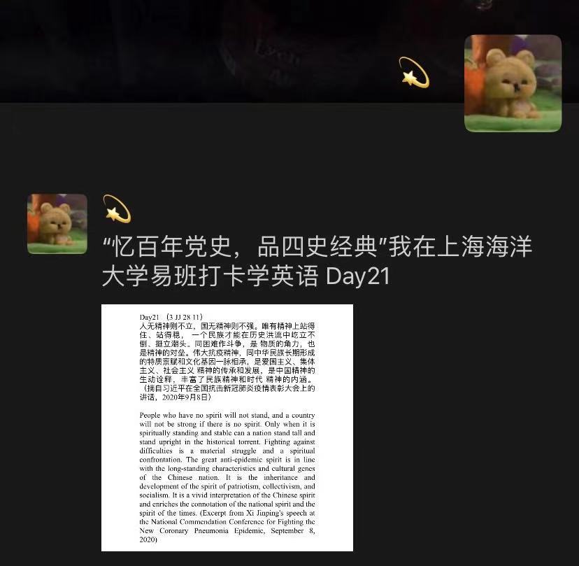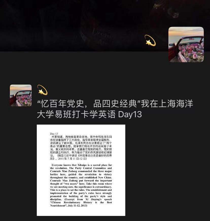 【英语翻译】上海海洋大学外国语学院禚瑞#“忆百年党史,品四史经典” 多语书朗译大赛