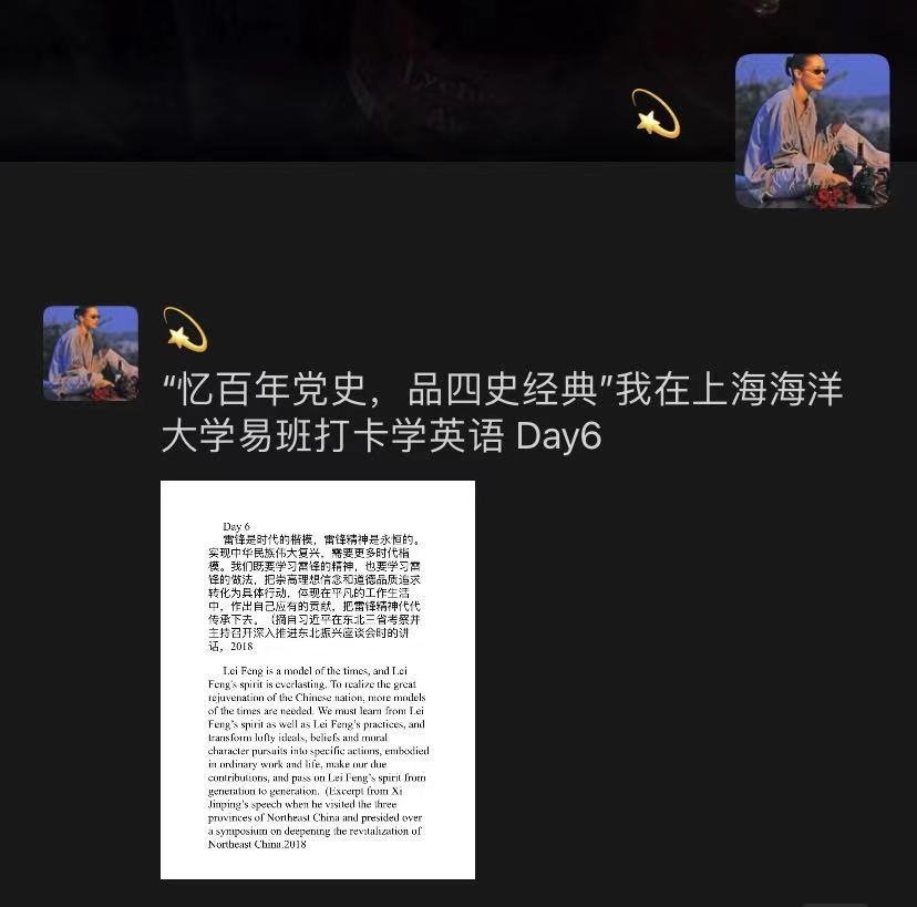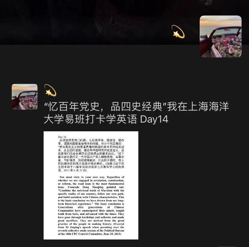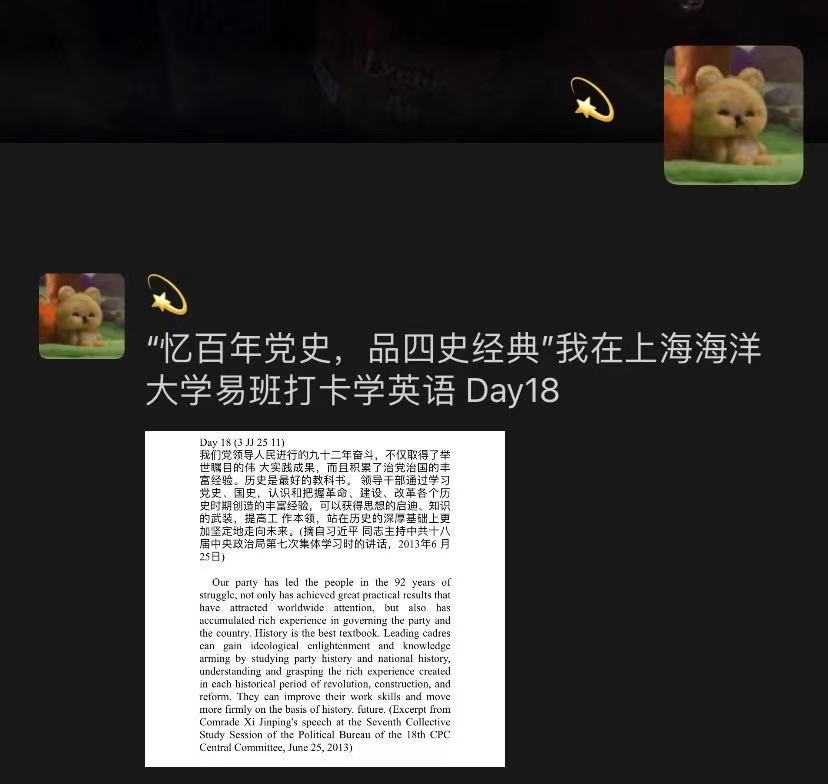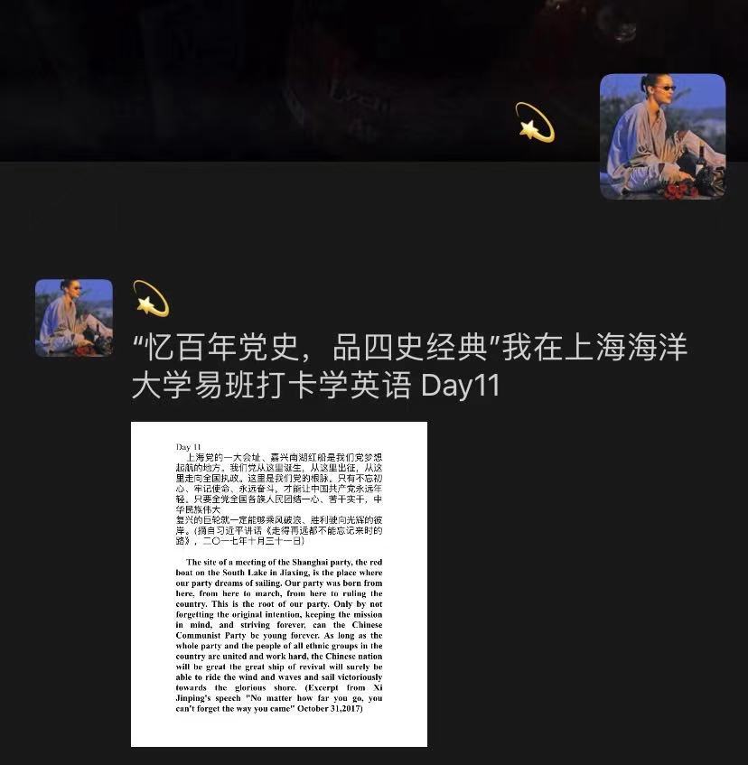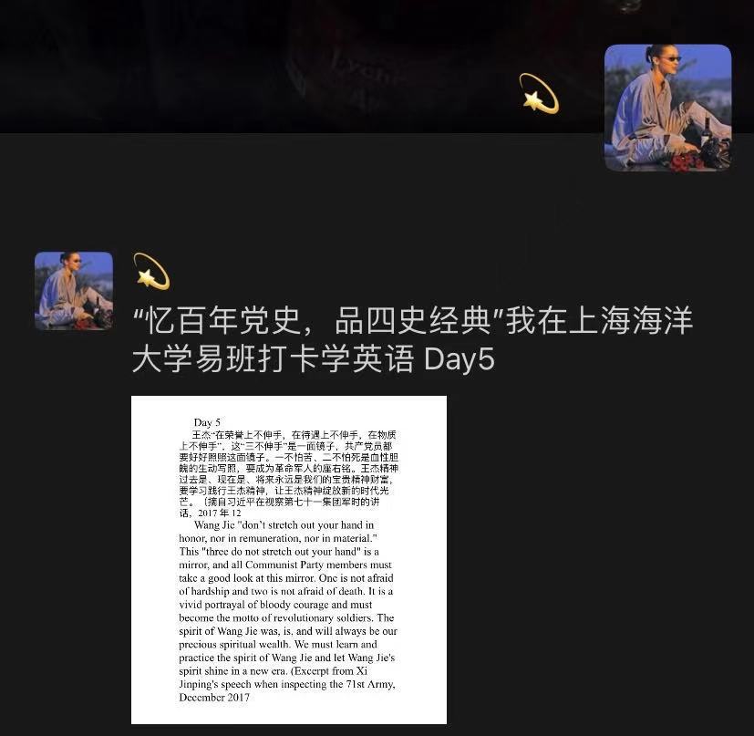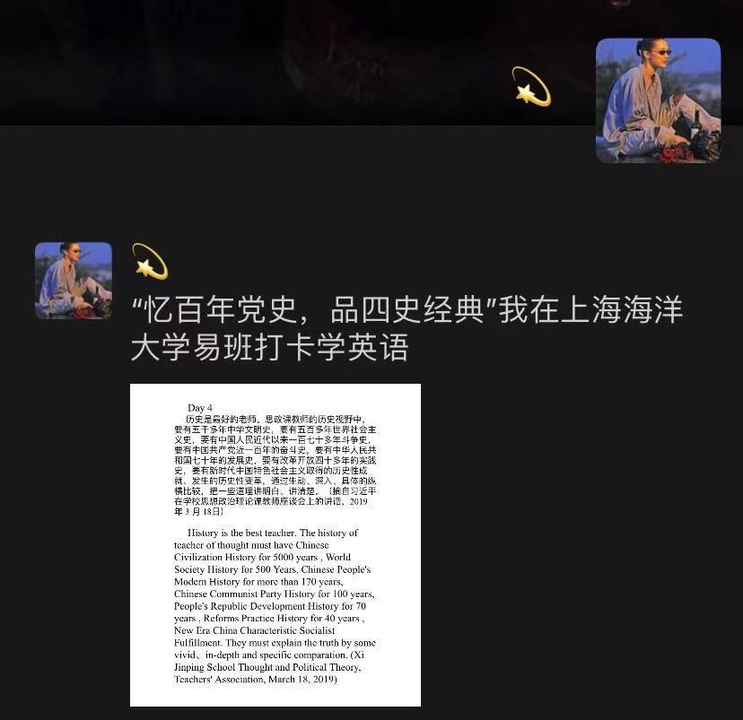 【英语翻译】上海海洋大学外国语学院禚瑞#“忆百年党史,品四史经典” 多语书朗译大赛