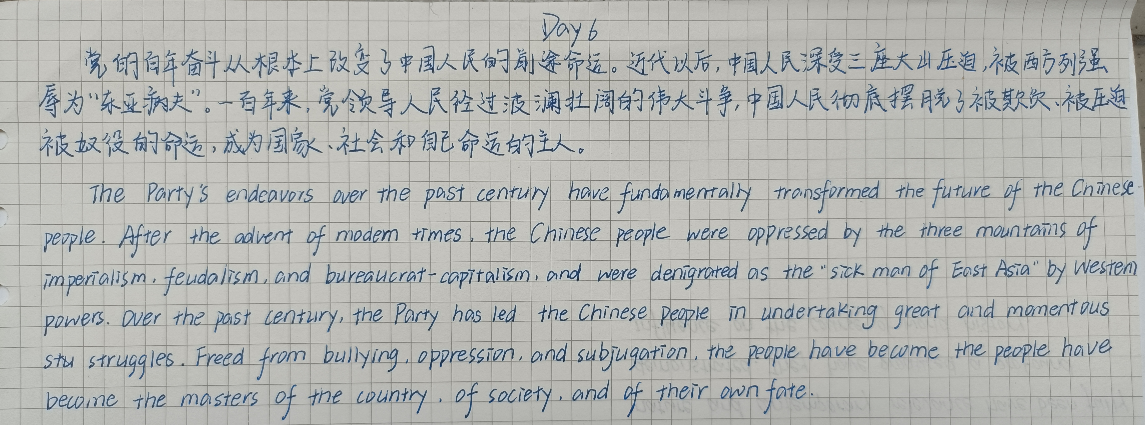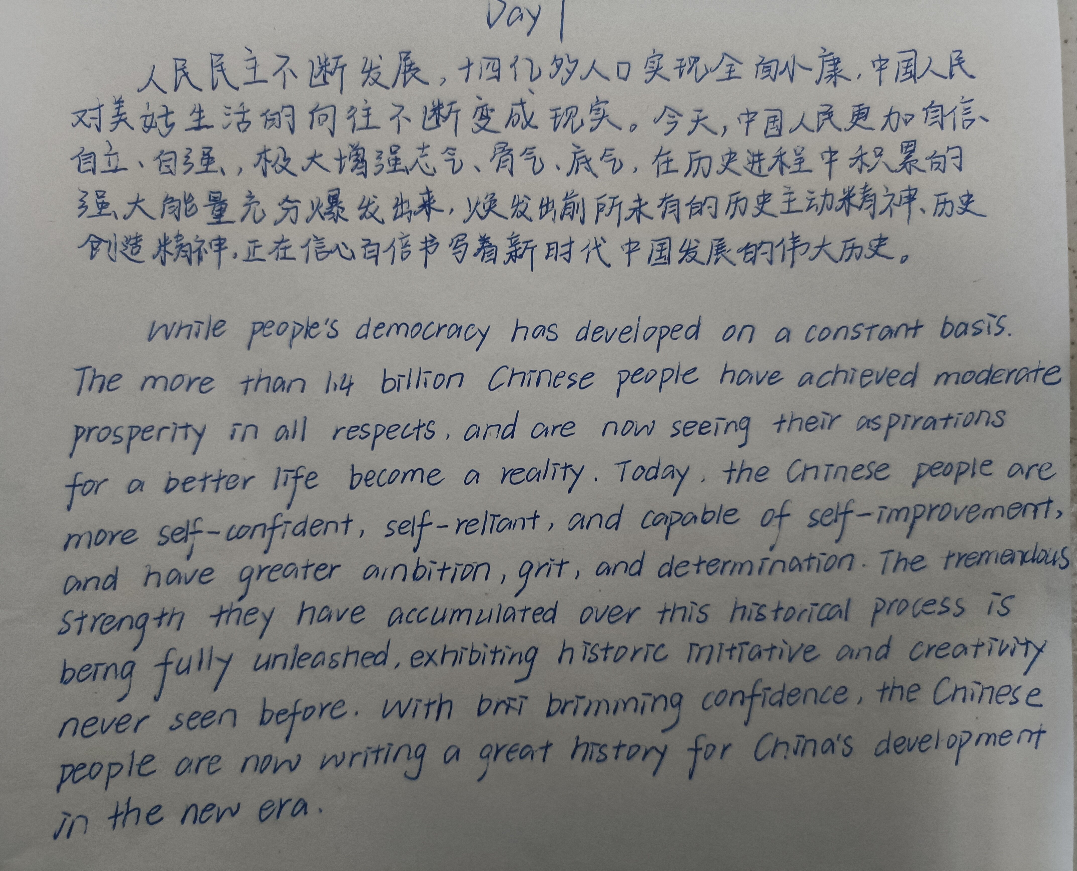 【中英文书写】上海海洋大学水产与生命学院丁改变“共忆海大峥嵘史·争诵时代新故事”多语书译大赛。