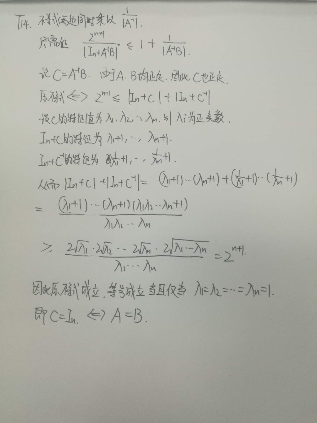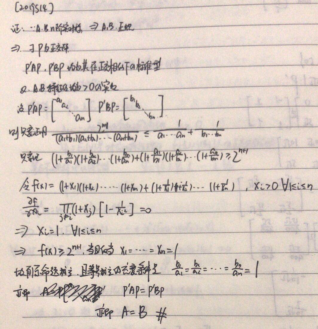 第三行有错误:一般来说,两个实正规阵只有当乘法可*时,才能同时正交标准化。但题目中并没有AB=BA的条件。
