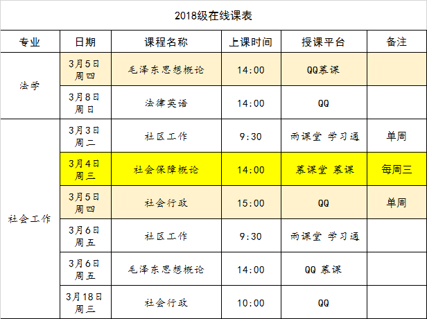 注:目前仅提供2018级已知的线上授课计划信息,内容仅供参考,如授课时间、平台有变,以授课老师通知为准。