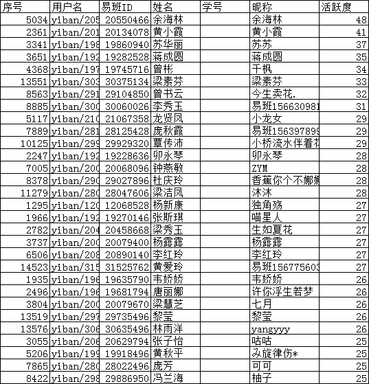 本期学习达人(活跃度前三十)4月28日起每两天更新一次。截止日为5月10日。
