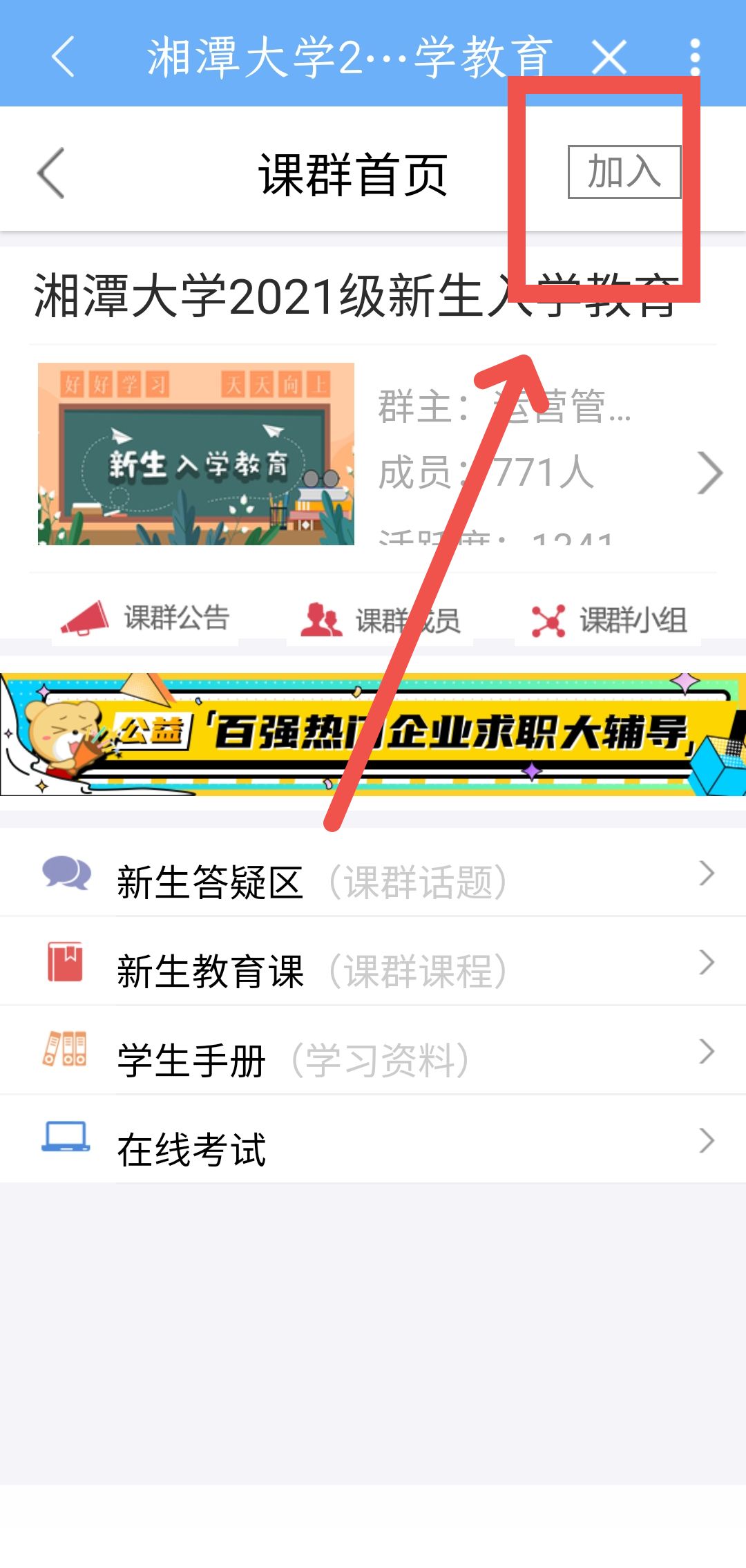 3、加入课群后,在这里是这样的,它上面没有加入的框