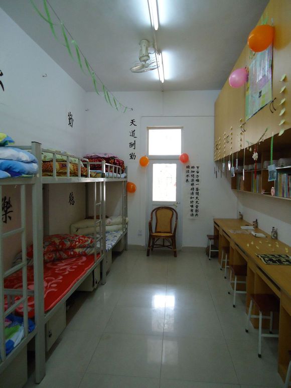 一期宿舍统一为上下铺,另一边为桌子,相比于三四期宿舍确实条件差一些,但是宿舍离食堂和文科楼都很近,所以相比起来会比较方便。下面介绍一下一期的功能设施: