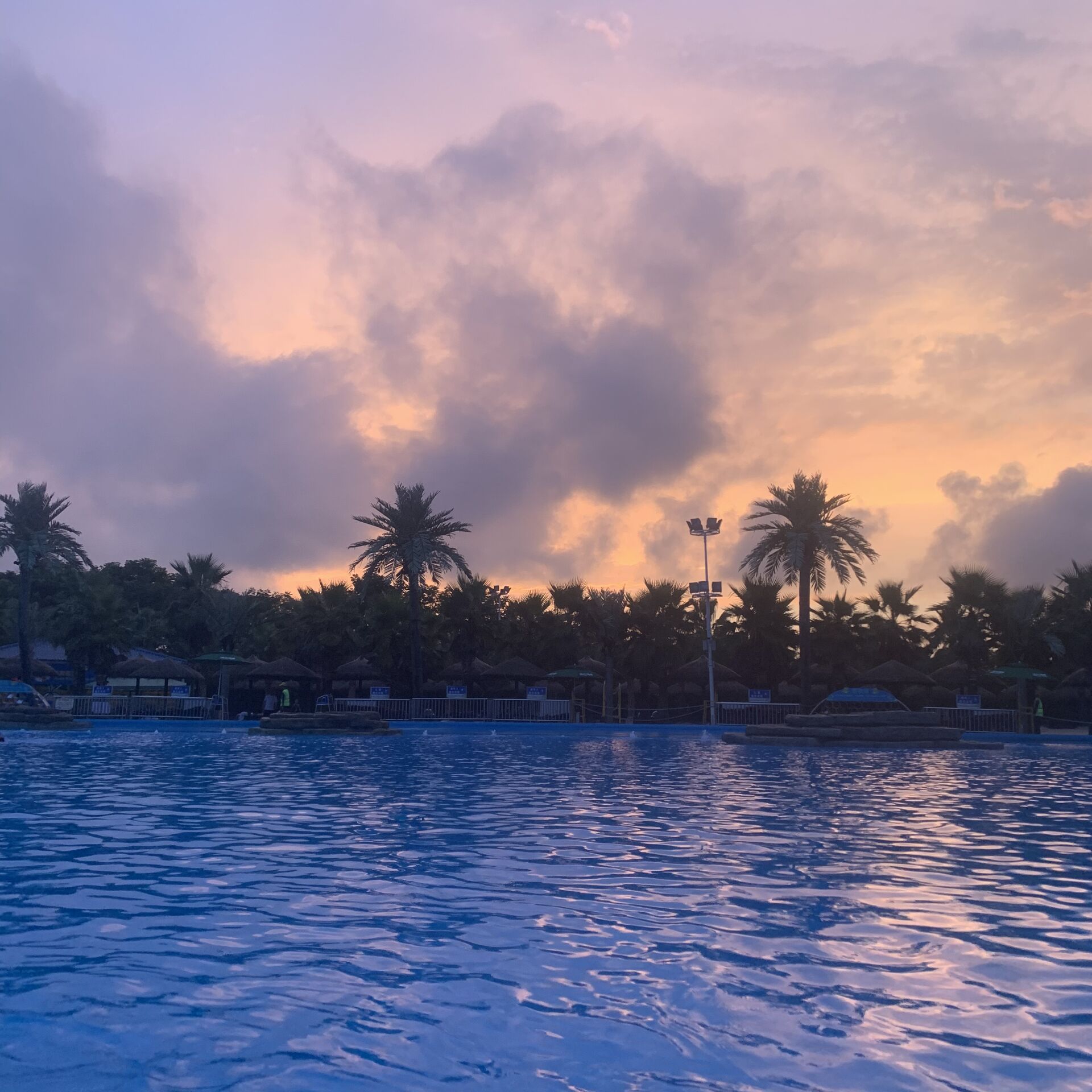 暑假的时候和从小玩到大的伙伴们去了水上乐园玩,傍晚的风景真的超美,像是海边。