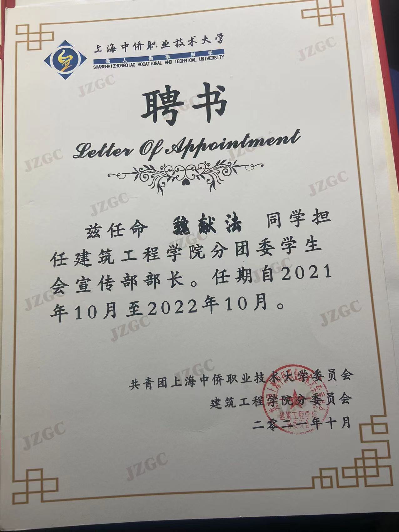 担任团学干部以来,先后参与2021-2022迎新春晚会、疫情防控志愿者、疫情口罩劝诫队、疫情防控常态化志愿者服务队等,得到了老师和同学们的肯定与支持。同时,还担任办公室值班员,积极辅助老师工作。