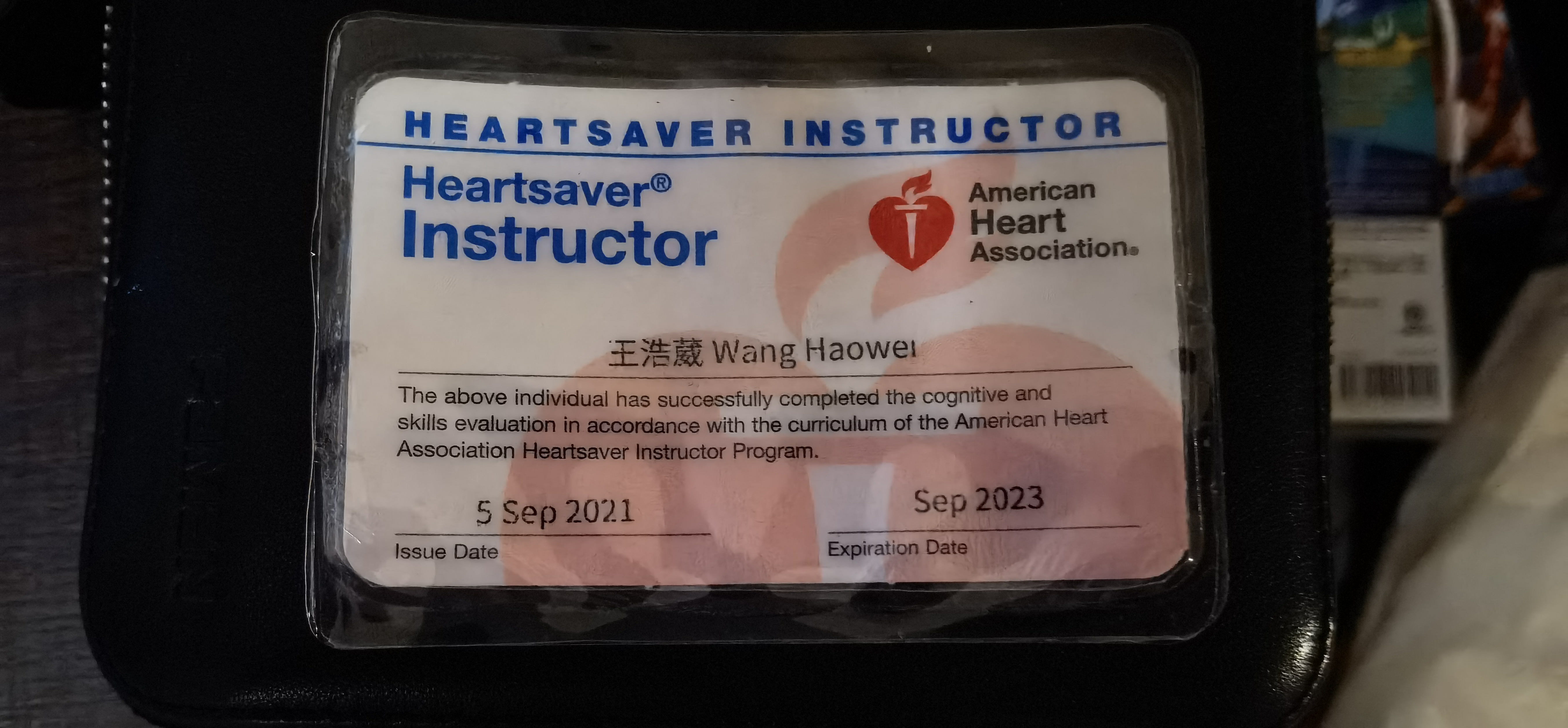 一、美国心脏协会AHA导师认证,中国第一批非医疗背景FRDLS灾难生命支持导师。
