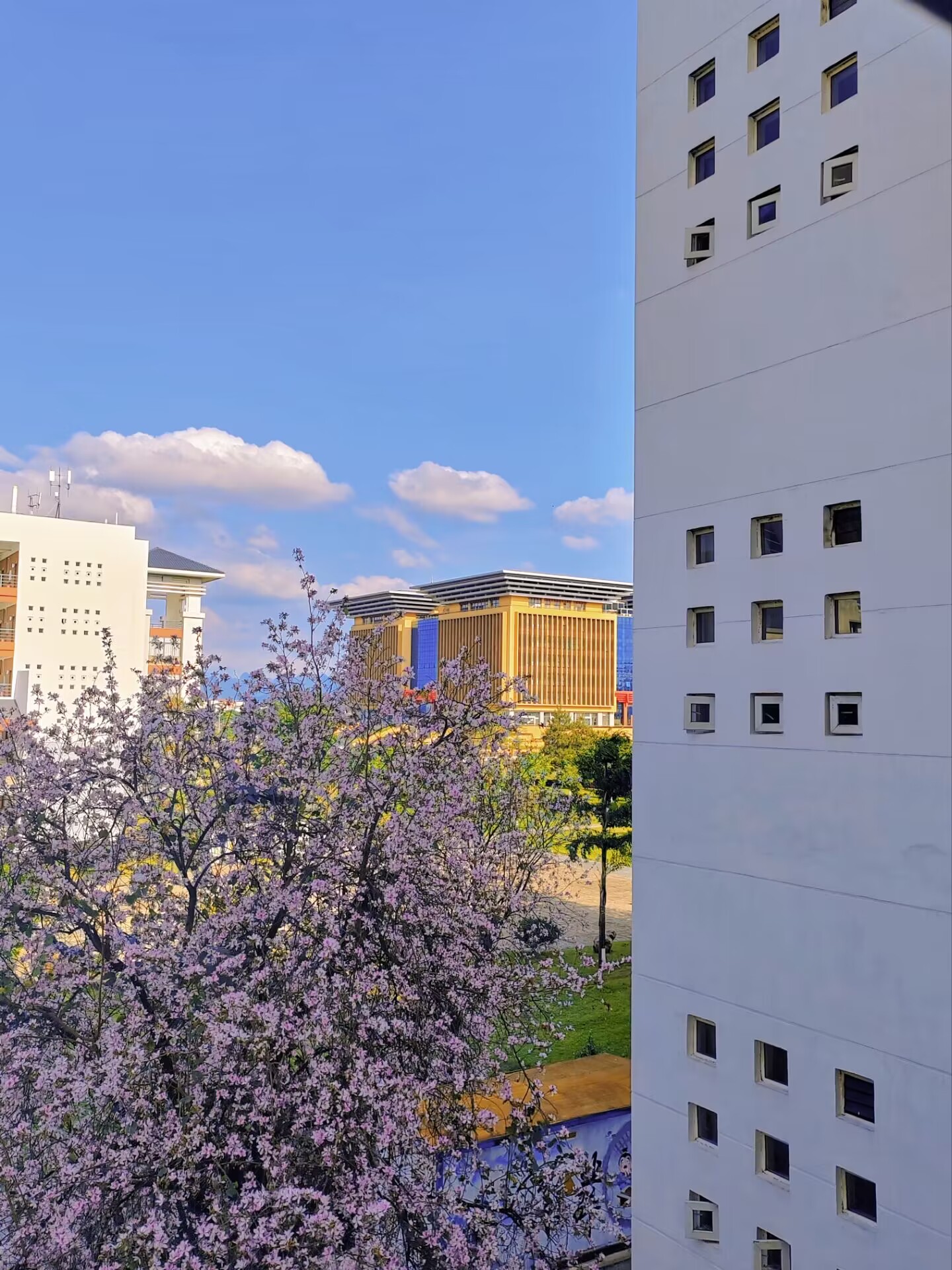 下课偶然发现学校的紫荆花开了,突然就想到了那句“宠辱不惊,看庭前花开花落;去留无意,望天上云卷云舒。”
