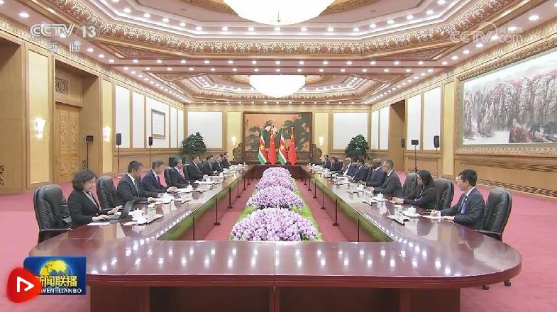 4月12日下午,国家主席*在北京人民大会堂同来华进行国事访问的苏里南总统单多吉举行会谈。