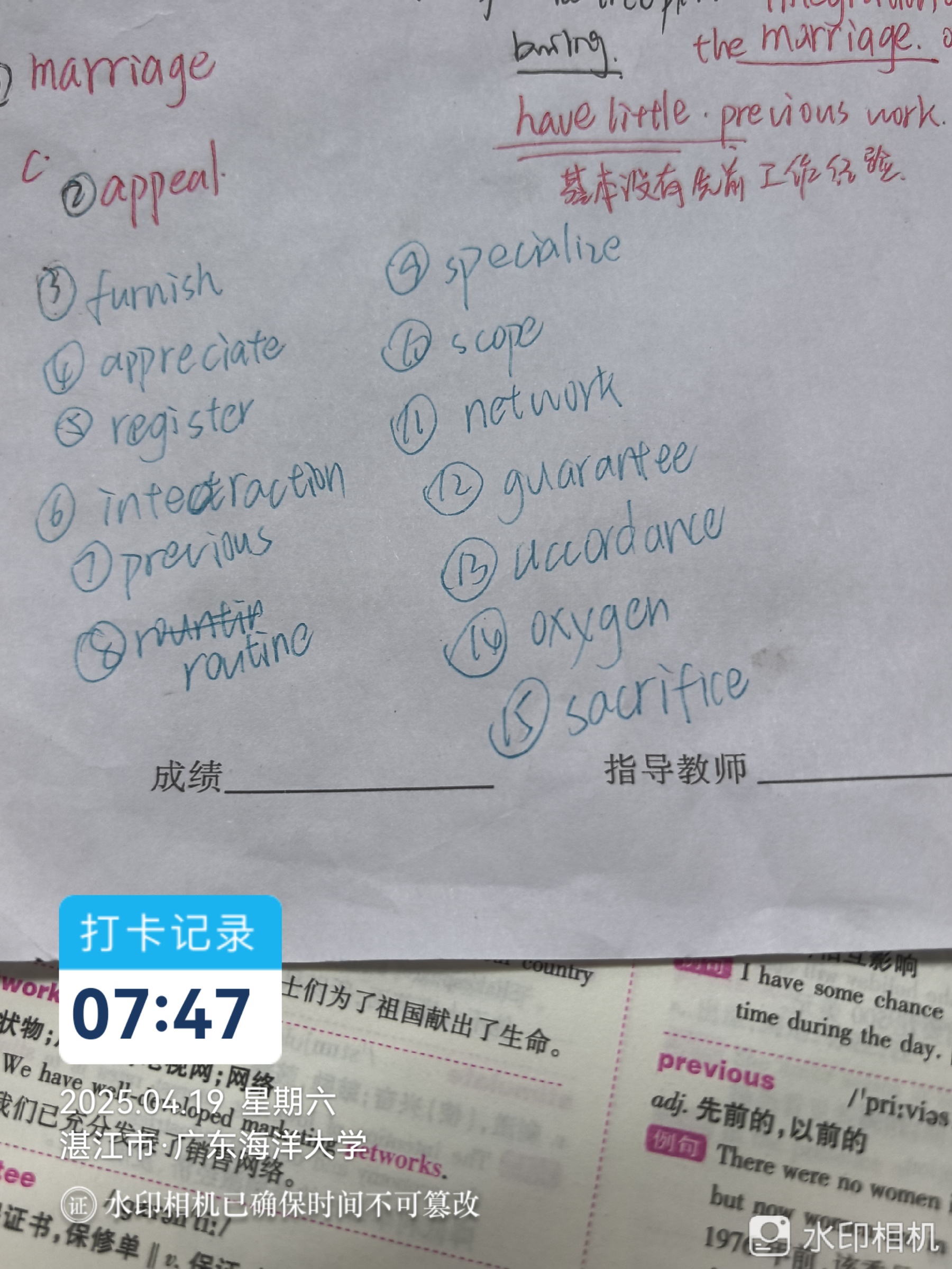 坚持晨间十五个英语单词的第三天!✌