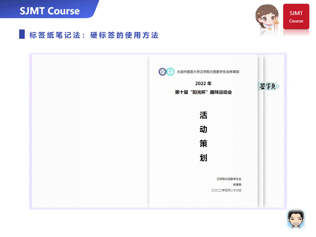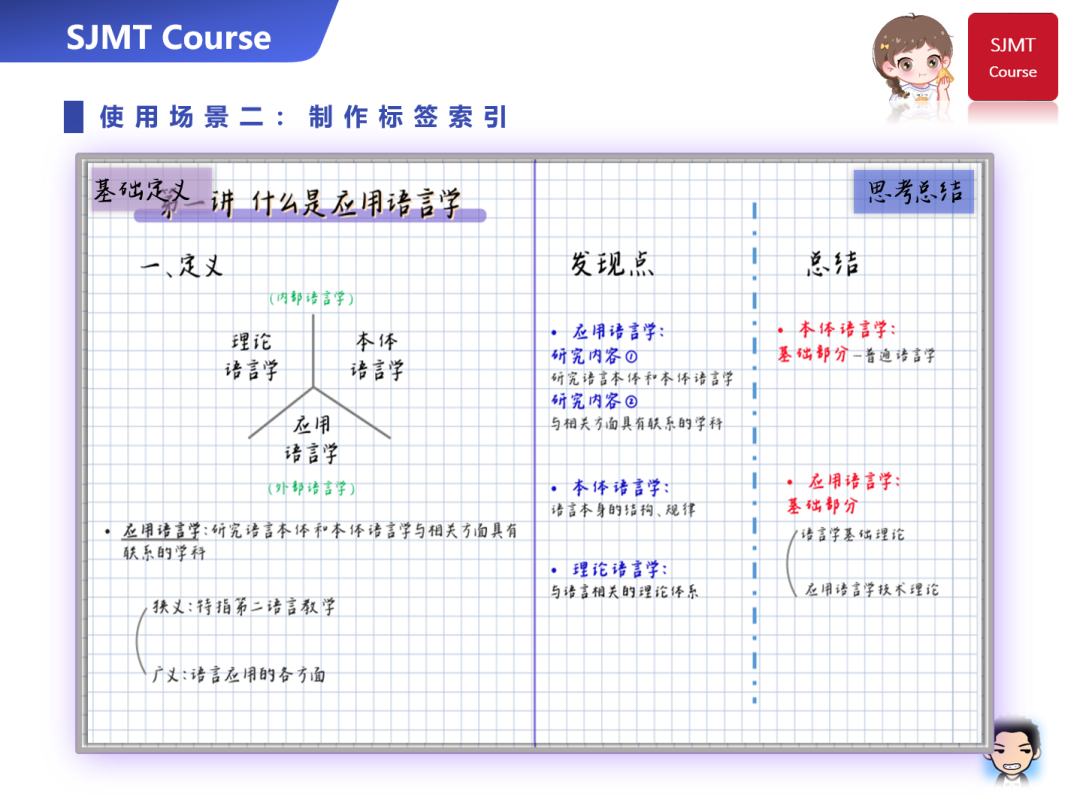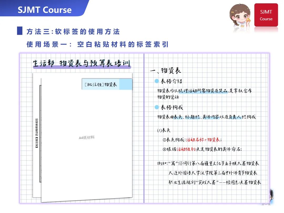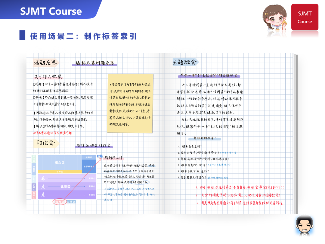 与便利贴不同,标签纸的主要作用是分页、区分标题层次和进行索引标注,以提高日后笔记查询的效率。