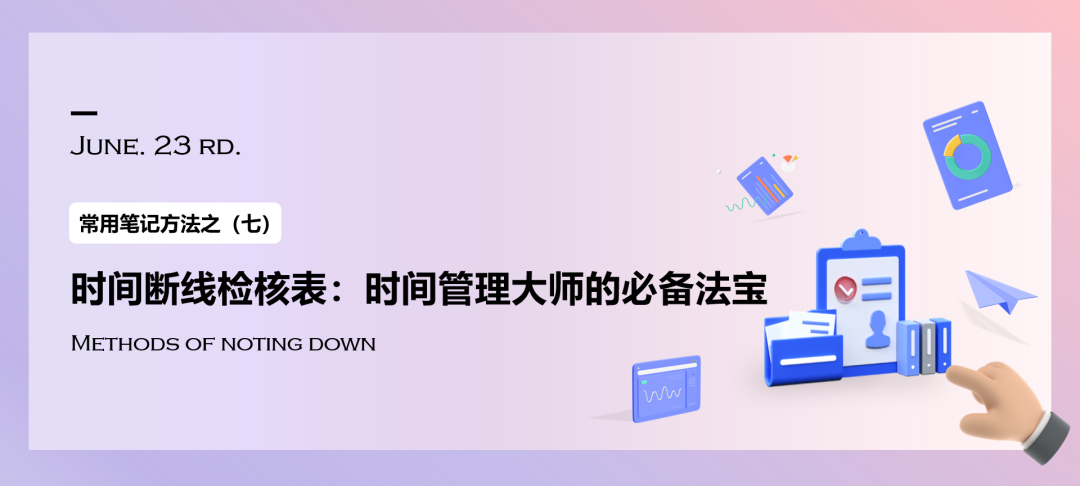 时间断线检核表把时间检核表与时间断线两者相结合,主要应用于多个时间段下的任务检核。时间断线检核表的使用能够大大增强我们对时间段内工作的规划,使我们的工作能够严格按照规划进行。