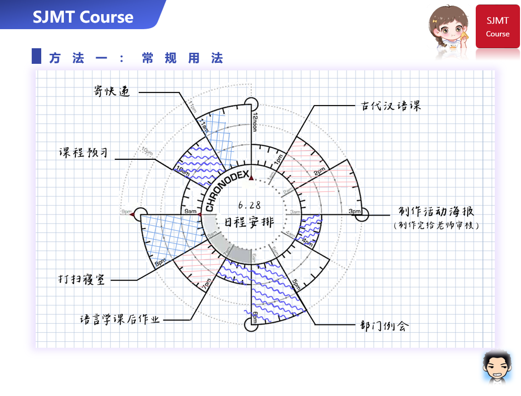 我们可以使用Mark笔按照事件的分类或紧急重要程度,对Chronodex进行涂色处理。