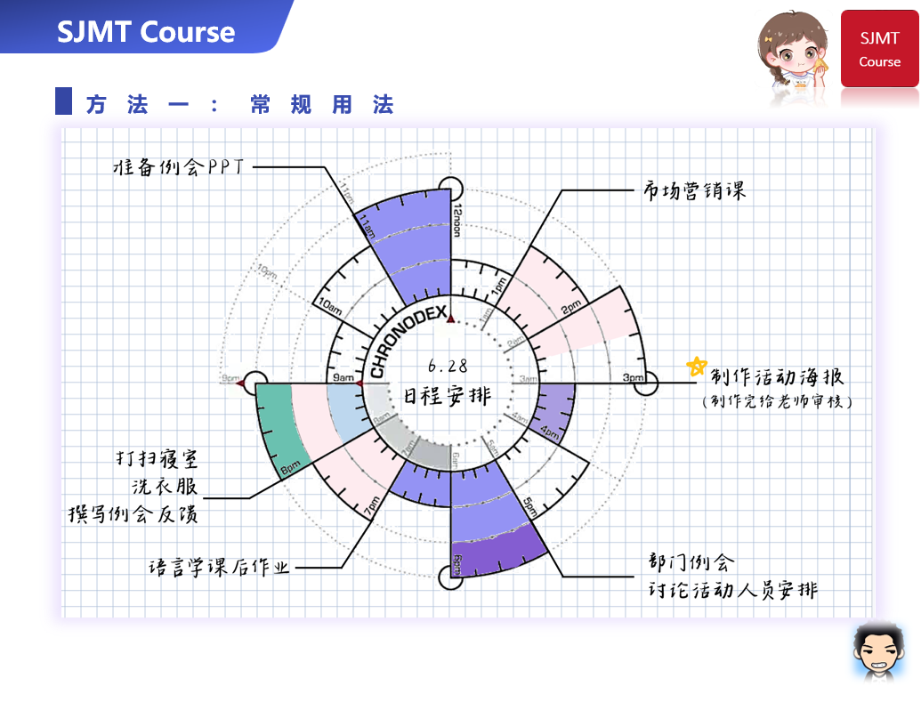 Chronodex最常规的用法就是作为一日事件的规划工具,按照一日的时间点,将事件标记出来。