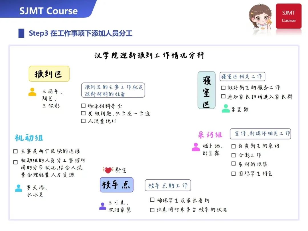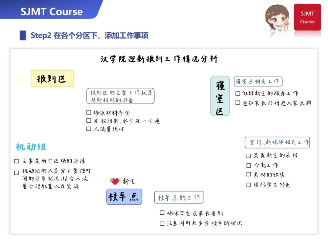 那么要展现的第二个元素,就是工作事项。在这一步根据所划分的工作分区规划工作事项,并且逐个敲定,确保其合理性。