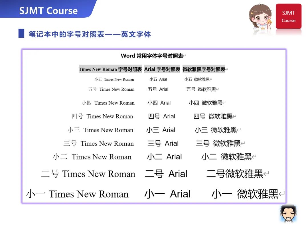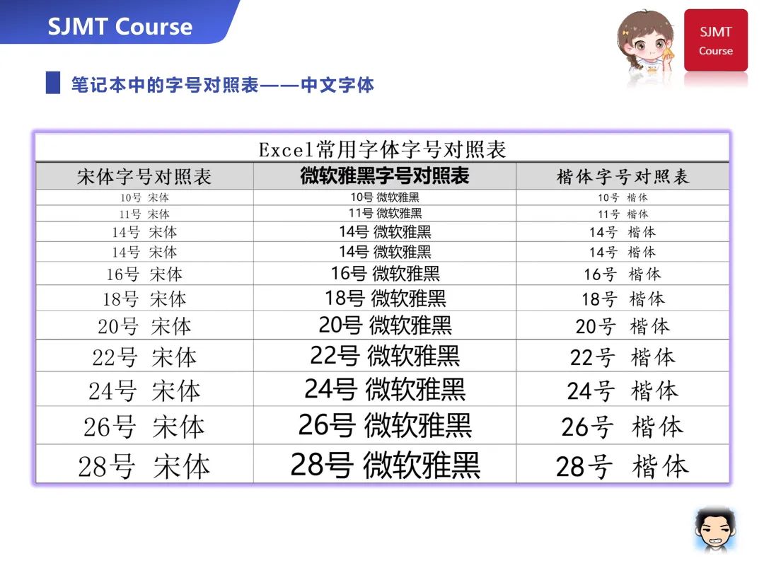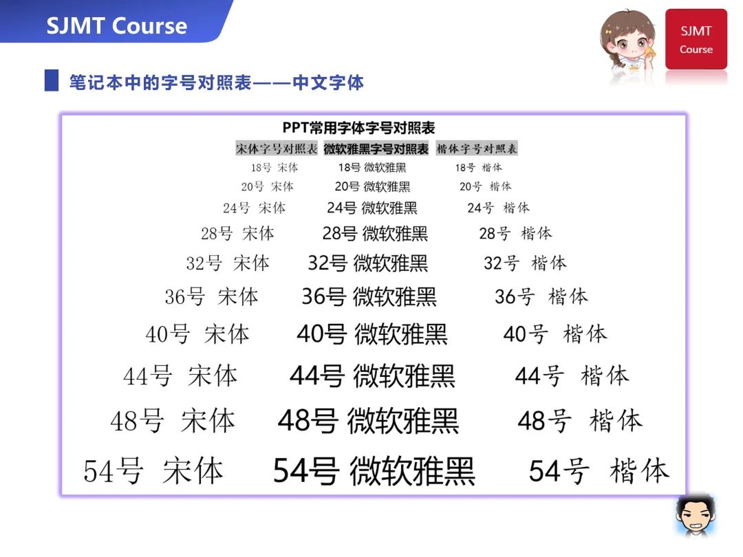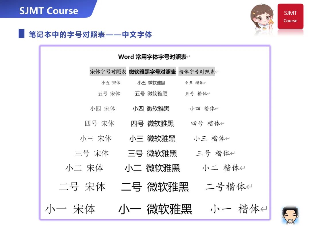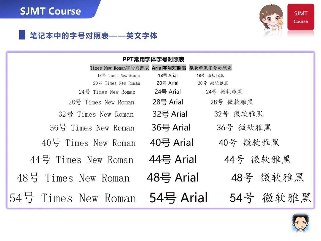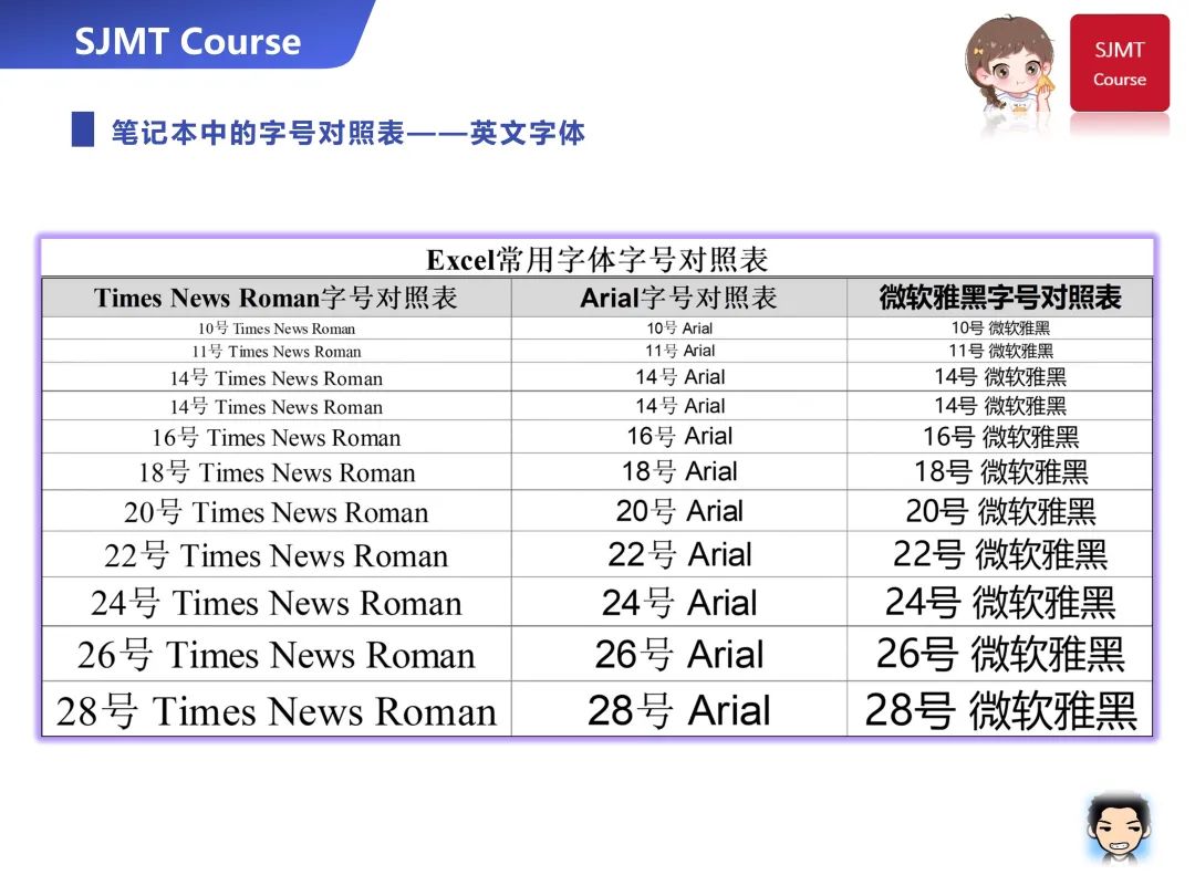我们常常会遇到打印文书却不知道Word或是Excel中的字号是否合适的情况,这时候我们就可以在我们的笔记本中添加字号对照表,方便我们及时对照字号的大小。同理,也可以在准备Pre时根据字号对照表调整PPT标题或者内容的字号大小。