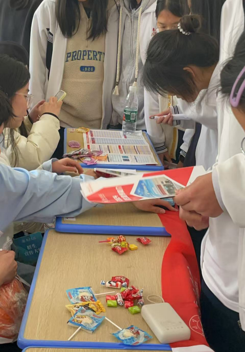 进入学校后,我们先在学校的一楼架空层进行了摆摊,利用学生下课时间来宣传,为学弟学妹们讲解惠院和解答疑问。摆摊活动受到了同学们的热烈欢迎,许多同学在挤在摊位前翻看宣传手册、向队员们询问惠院的信息等等。队员们热情饱满地为同学们解答,展现了惠院学子积极向上的工作态度。