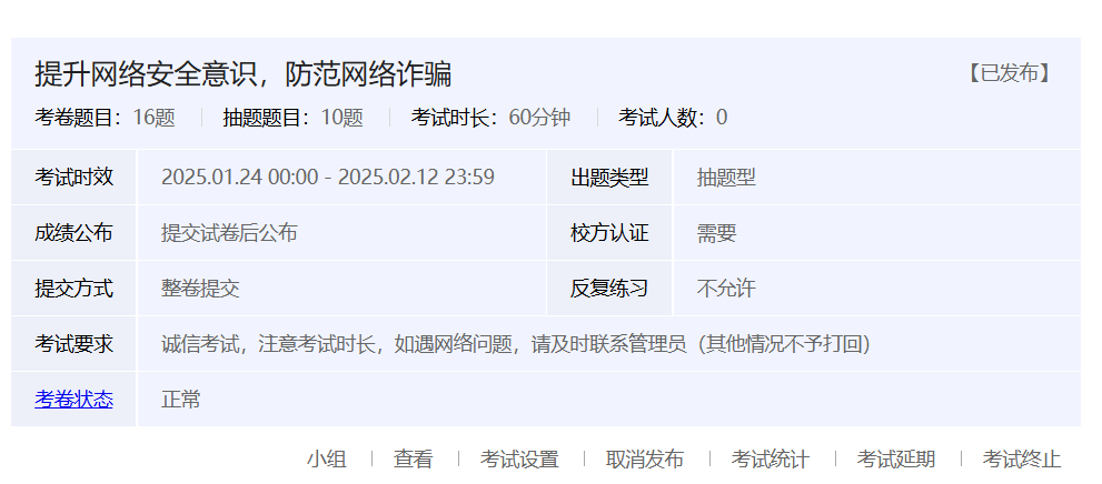 由于管理员的疏忽导致答案错误,深表抱歉。因此重新发布了考试,请已经考完的或还没有考的同学尽快考试哈!