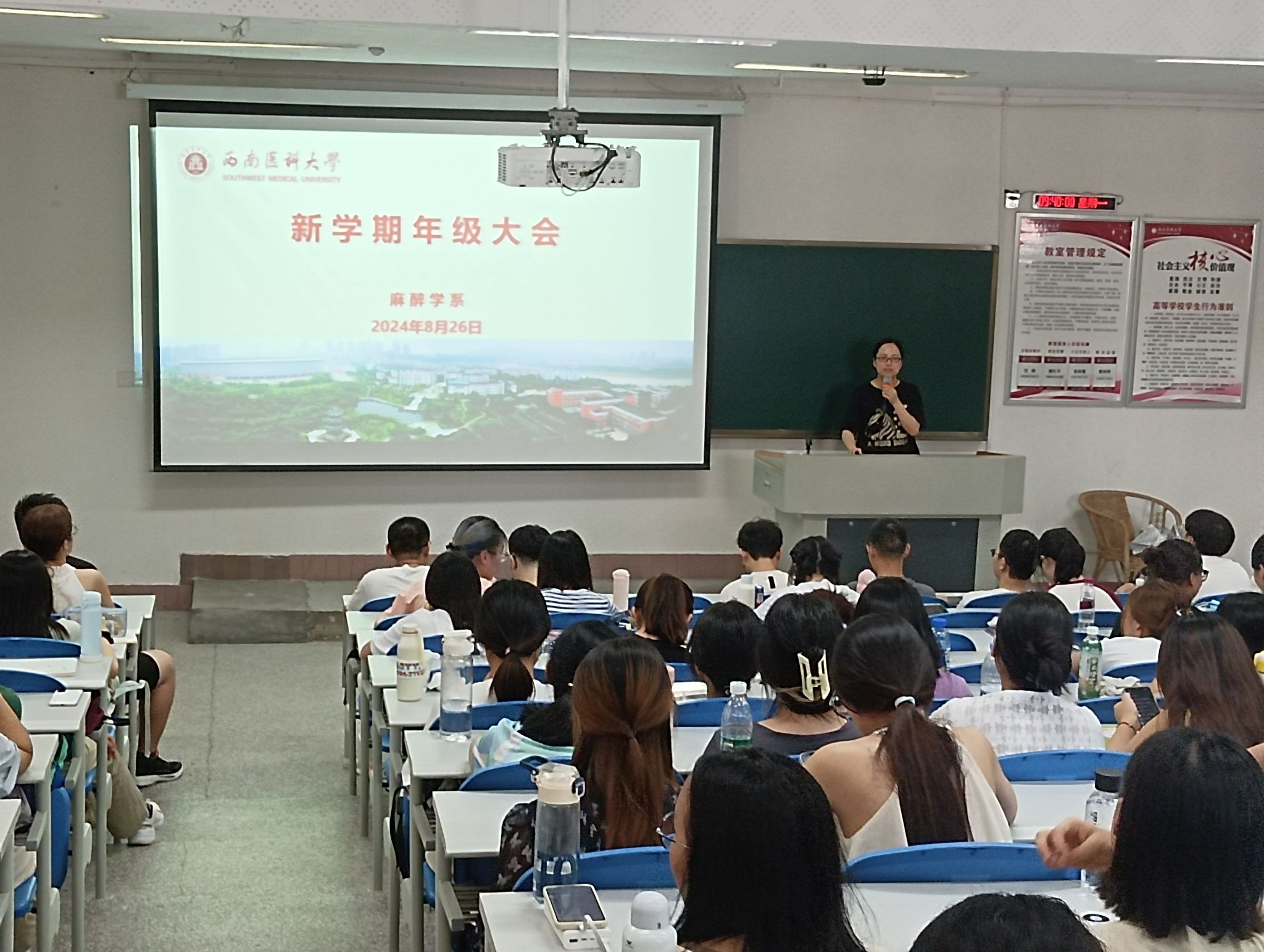 8月26日-30日,麻醉学系召开新学期年级大会,帮助同学们明晰新学期目标规划,进一步树立规范意识和安全意识。会议由麻醉学系学生科科长胡艳秋,辅导员钟守静、段誉主讲,2021级-2023级全体学生参加。
