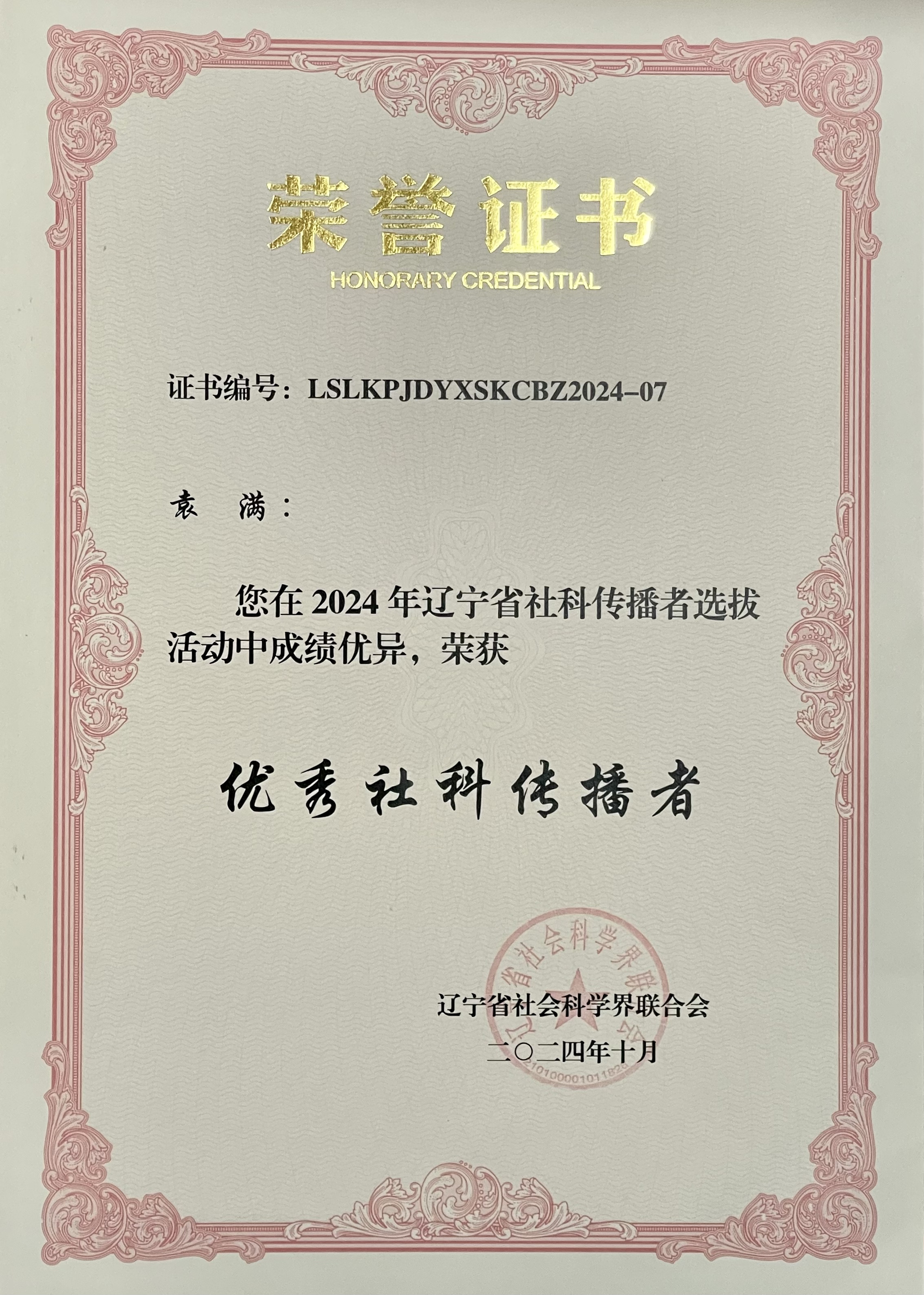 指导学生荣获2024年辽宁省社科传播者选拔活动中荣获 优秀社科传播者