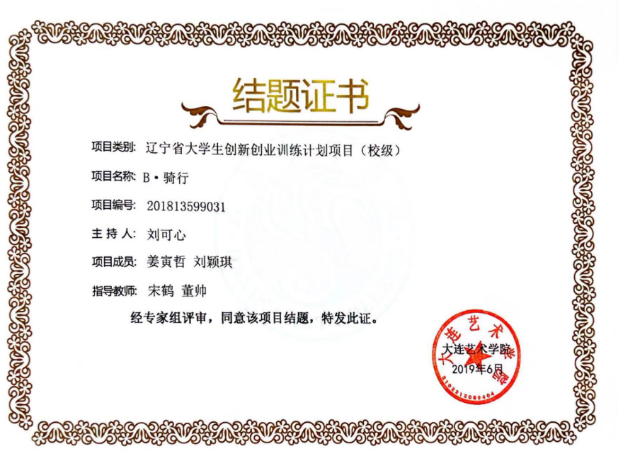 大学生创新创业训练项目证书(校级)