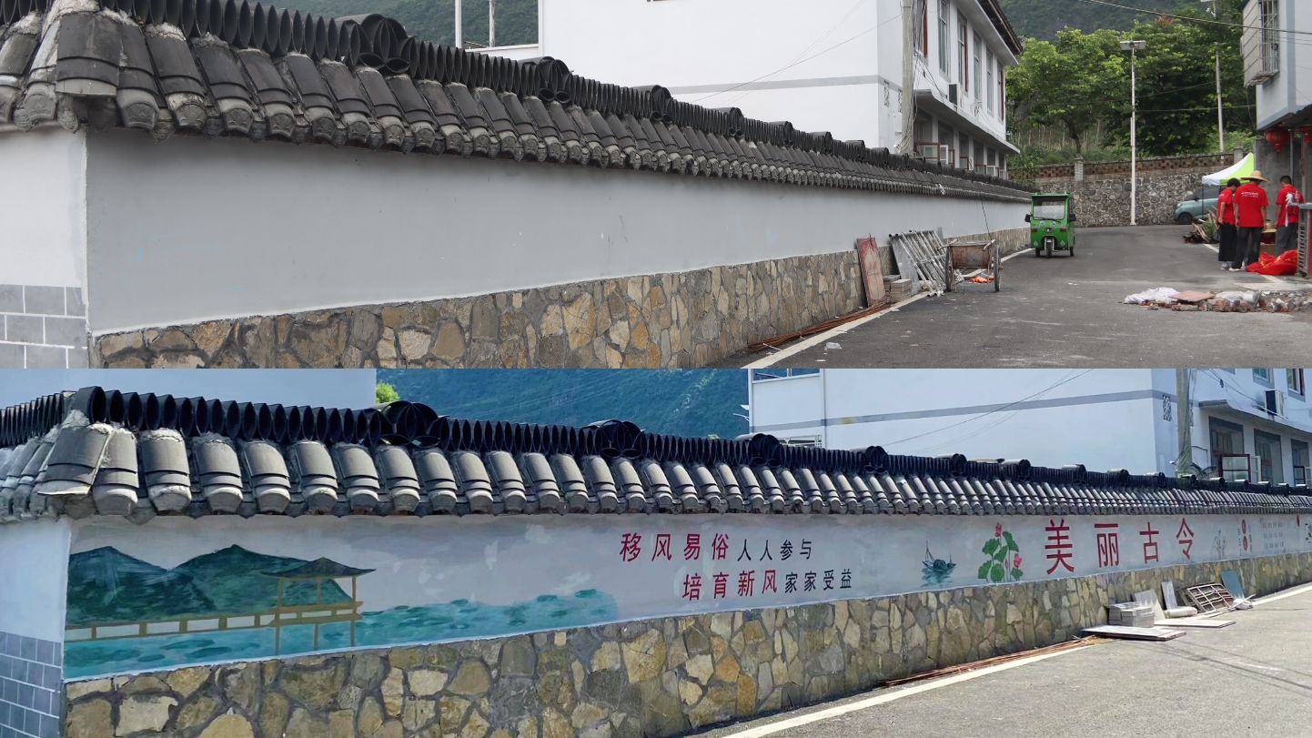 为了引导村民树立文明新风的工作,用手中的画笔和颜料精心绘制着一幅幅色彩鲜艳、主题鲜明的墙绘作品。墙绘内容涵盖了乡村振兴、民俗文化、文明新风等多个方面,不仅美化了乡村环境,更成为了传播乡村文化、倡导文明风尚的新风貌。