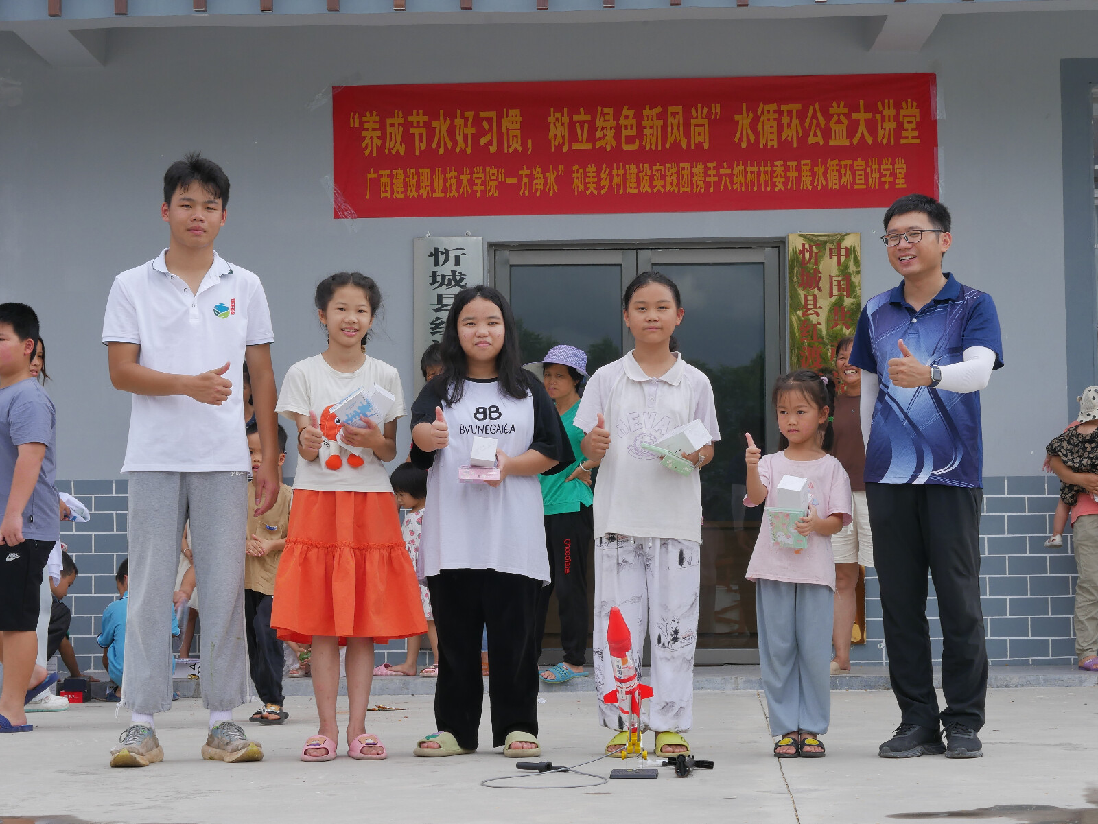 接着,实践团开展水循环科普宣讲活动,倡导水循环利用,节约用水的理念。通过 “水火箭” 科技活动让小朋友们学习到“水火箭”发射的原理,充分领略到了水的神奇与魅力,认识到水在科技发展中的重要性和多样性。一系列的活动寓教于乐,现场氛围热烈。