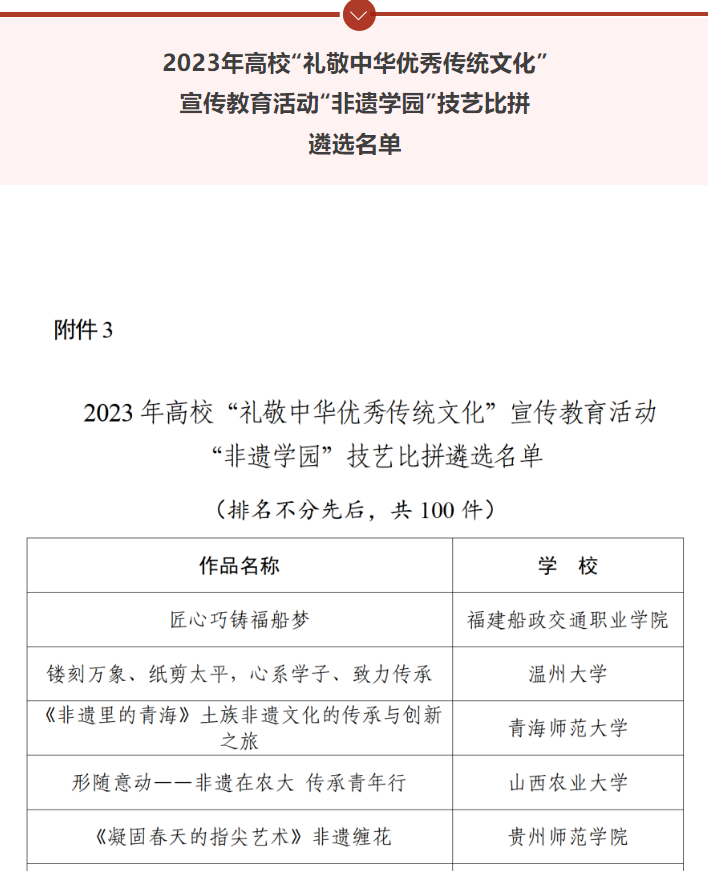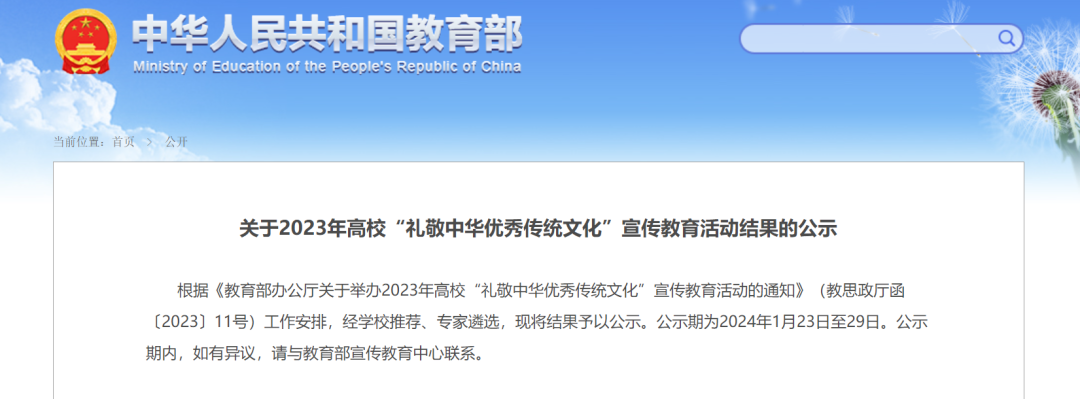 喜报:我校作品入选2023年高校“礼敬中华优秀传统文化”宣传教育活动遴选名单
