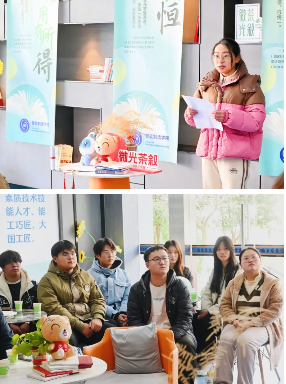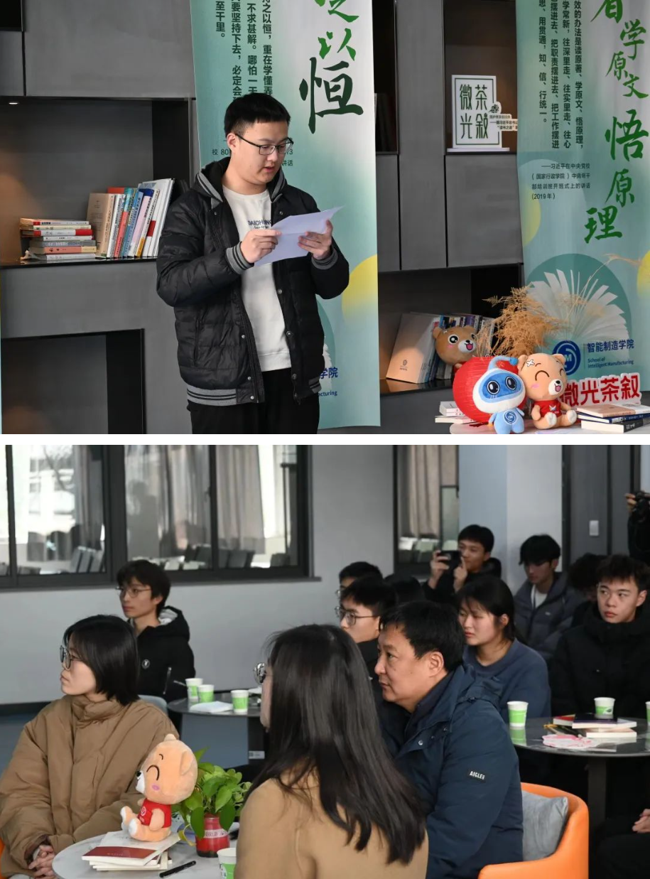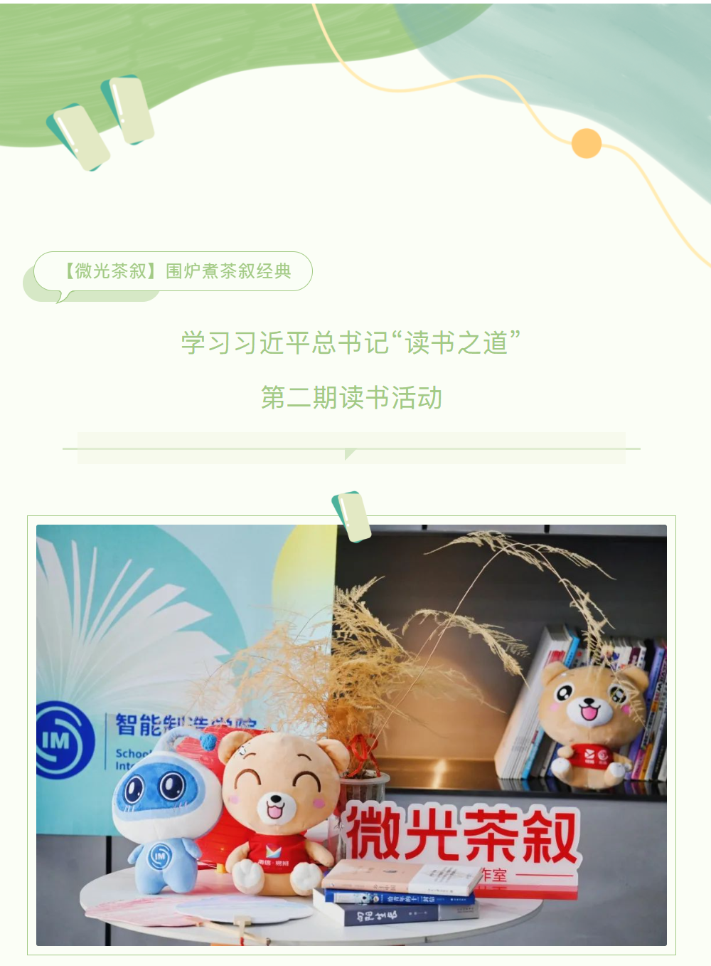 为深入学习贯彻习近平总书记关于读书学习的重要论述,引导学生探求读书方法,提高阅读效率,进一步营造浓厚的校园阅读氛围,2024年12月18日,智能制造学院举行了【微光茶叙】围炉煮茶叙经典—学习习近平总书记“读书之道”第二期读书活动。智能制造学院党总支副书记尹玉军、智能制造学院分团委指导教师张欣雨老师以及30名学生代表参加了本次活动。