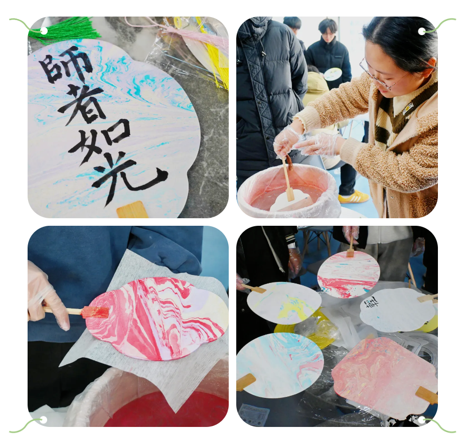 同学们挥笔将诗词书写在扇面上,或在灯笼上书写“学海无涯”等励志语句,将心中的情感和对传统文化的理解融入笔墨之间,传递积极向上的精神力量。