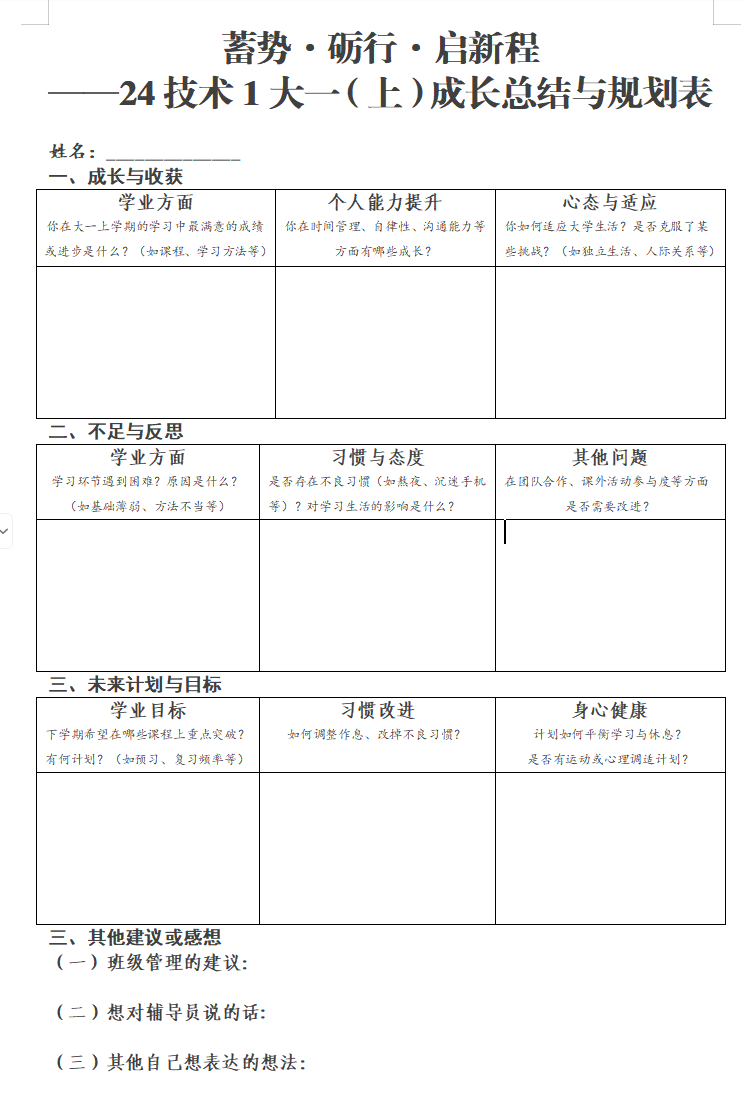 蓄势·砺行·启新程 ——24建筑工程技术1班开展大一(上)成长总结与规划活动