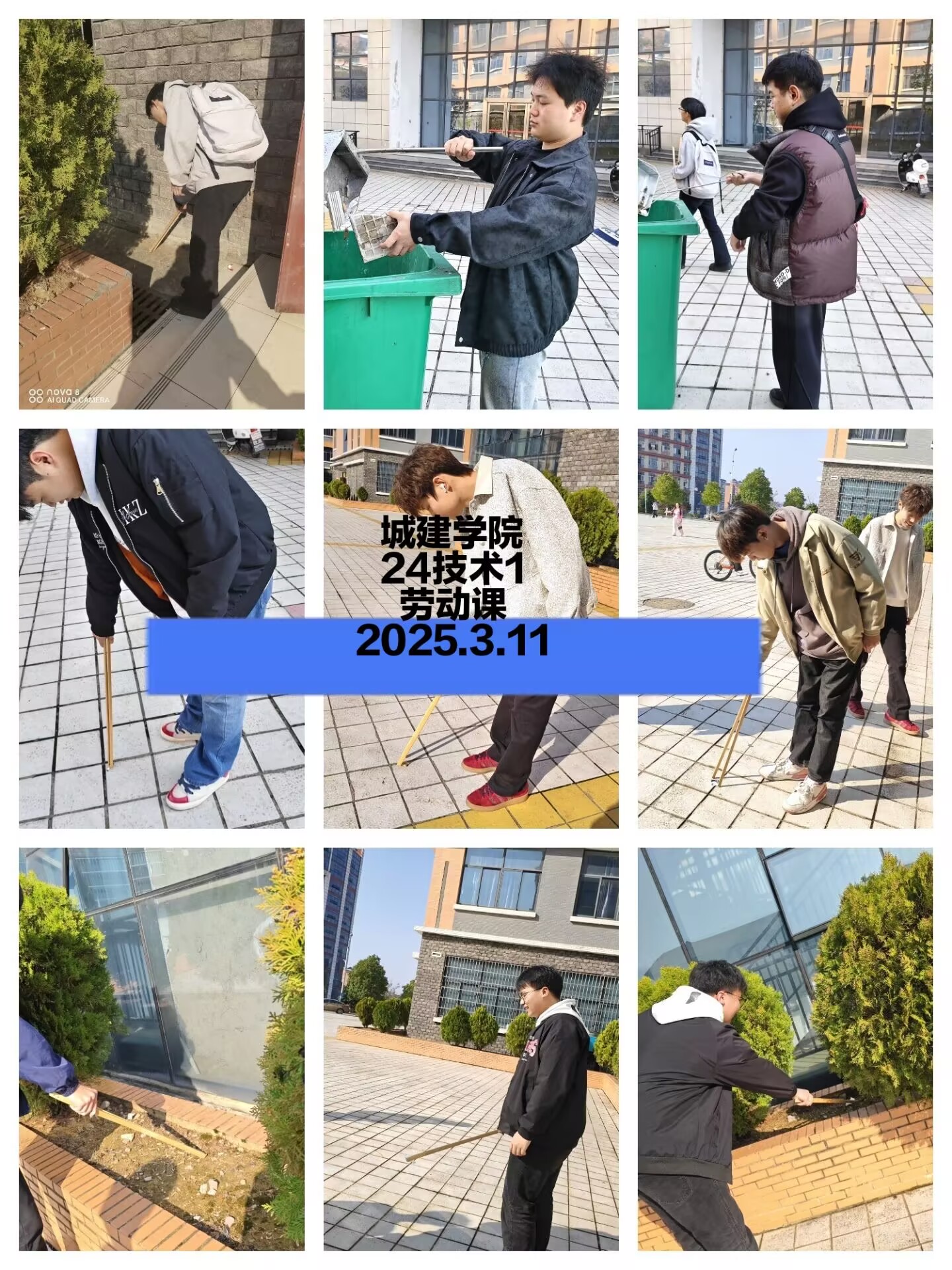 为积极响应学校劳动教育号召,培养学生的劳动意识与责任感,2025年3月11日24 技术 1 班全体同学在校园内开展了一场以 “净美校园,劳动有我” 为主题的劳动教育实践活动,对校园白色垃圾、果皮等进行了全面清理。