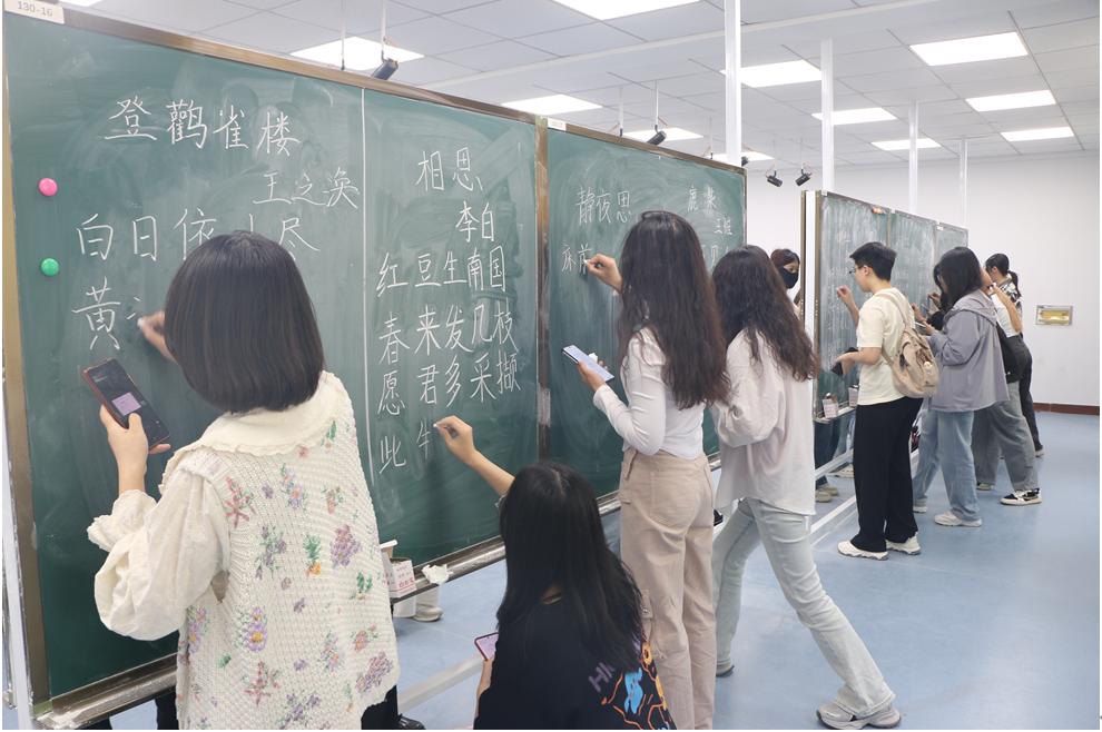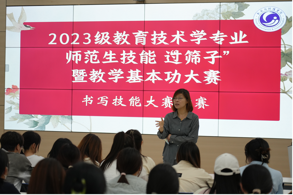 大赛分为书写技能和演讲技能两个部分。在书写技能比赛中,刘霞老师在知行楼102教室为大家进行了赛前培训,系统、细致地讲解了写好粉笔字和钢笔字的技巧,从书写内容选取,书写间架结构到书写注意事项等多个方面告诉大家如何能将书写的效果呈现的更完美。