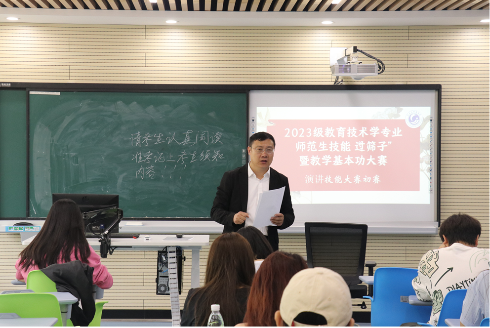 为进一步强化师范生教学技能、增强实践应用能力、提升师范生综合素质、促进师范专业发展,5月16日、17日,由新闻与传播学院主办,团委学生会、易班工作站、“微光成炬”网络育人工作室承办的2023级教育技术学专业师范生技能“过筛子”暨教学基本功大赛初赛在学校知行楼顺利开展。新闻与传播学院党委副书记宋占丰、团委书记、“微光成炬”网络育人工作室负责人刘微、教师教育学院崔立宏、刘霞,学院部分专业教师参加此次活动。2023级教育技术学专业77名学生全员参加比赛。