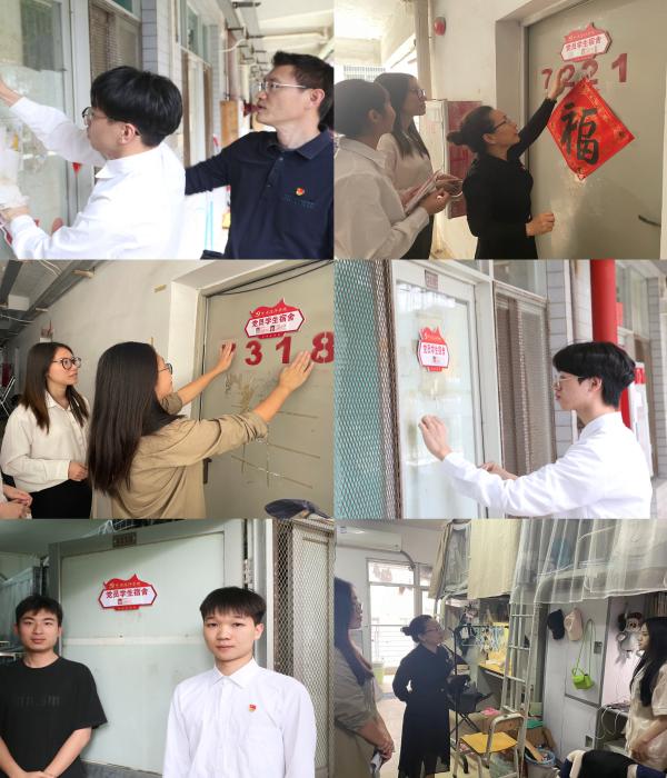 我院共有党员宿舍53间。与会领导老师为党员宿舍进行了现场挂牌,并开展了宿舍走访。会后,支部也将分别组织不同形式的学生党员宿舍挂牌活动。通过挂牌,既有助于提高学生党员的党员意识、责任意识和先锋模范意识,发挥引领作用,也能通过亮明身份,自觉接受师生监督,同时,还有利于带动全体同学共创和谐文明向上的宿舍文化氛围。