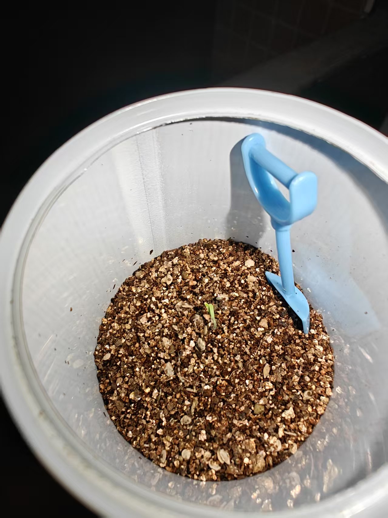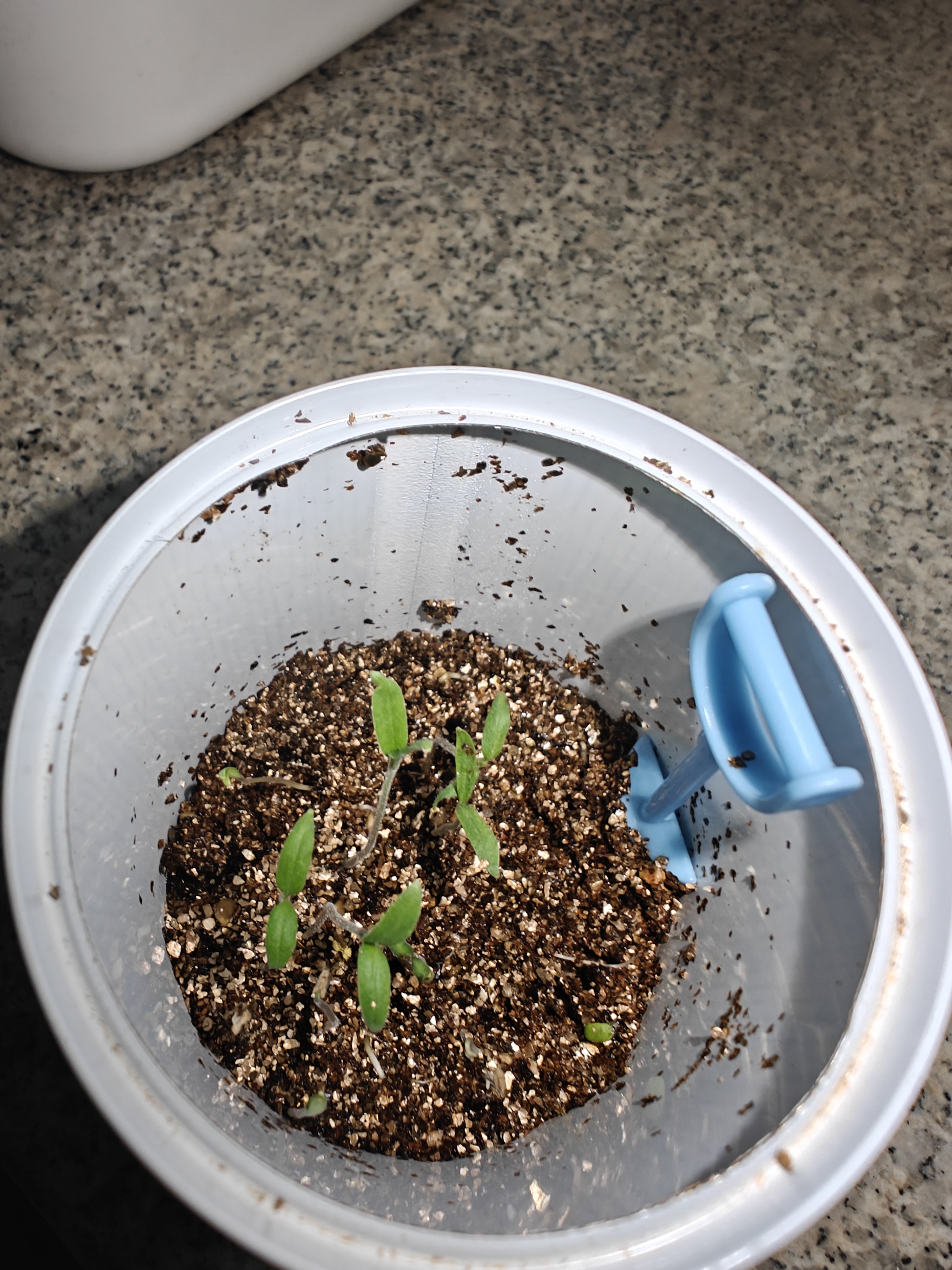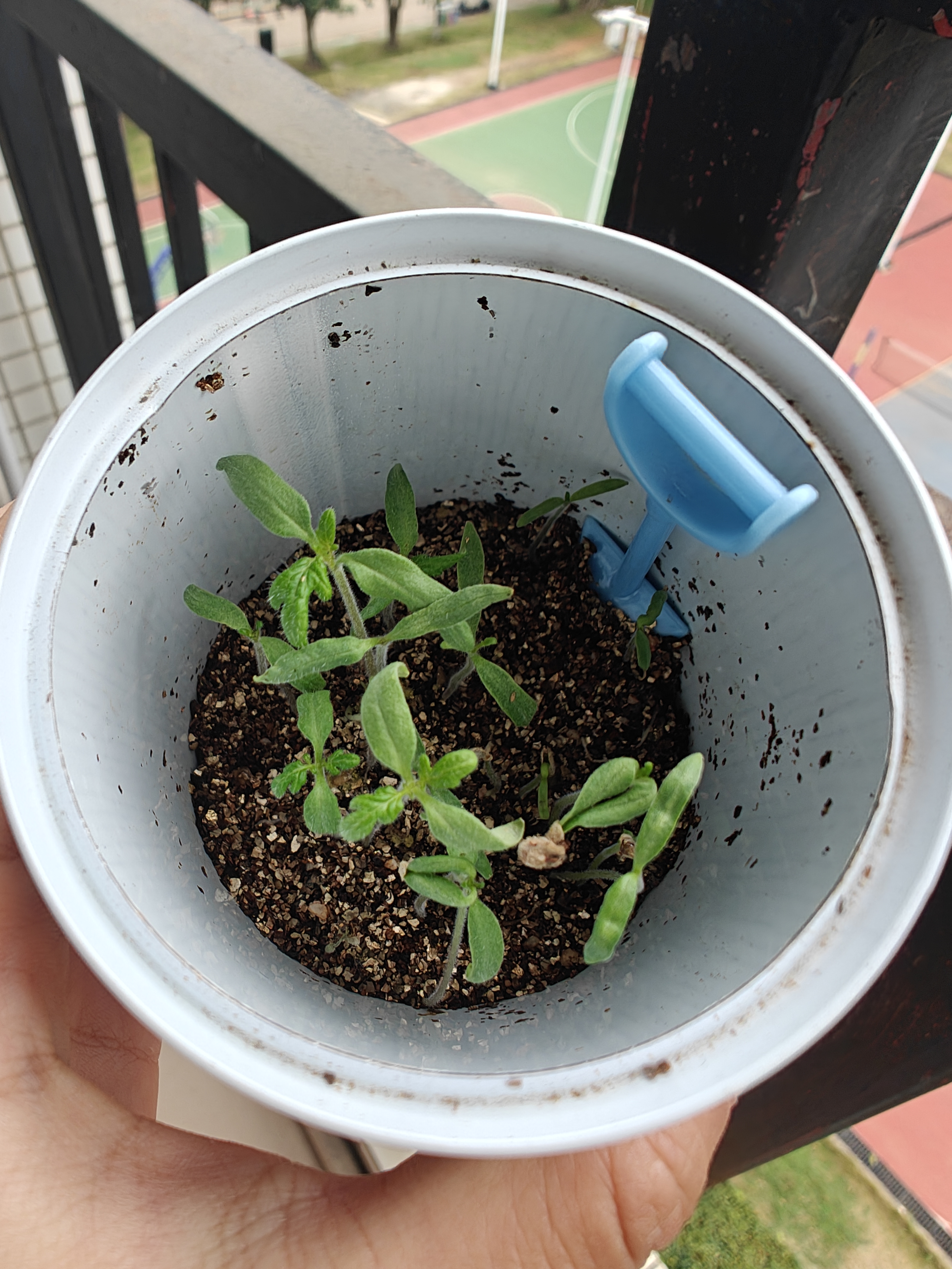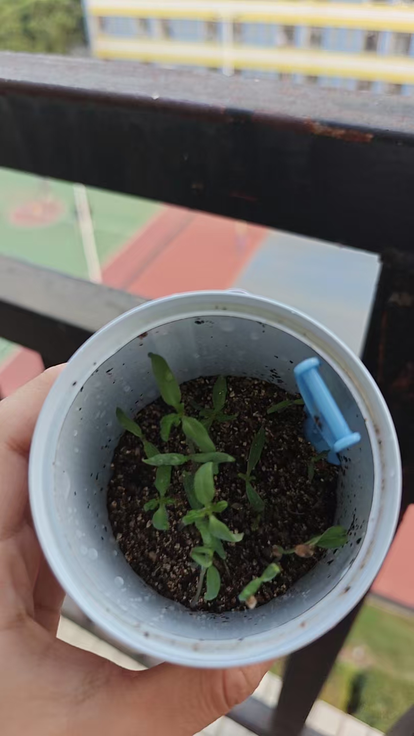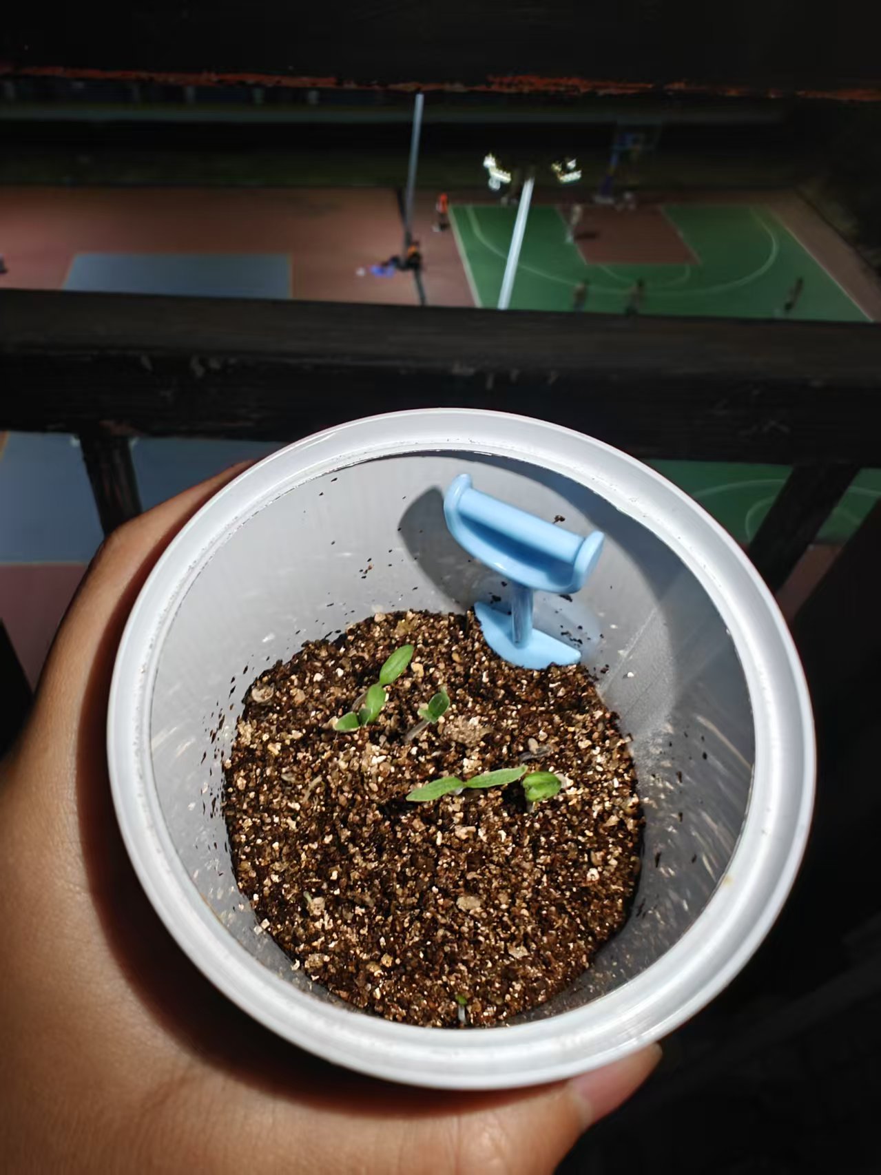 可能是一开始播种的时候,没有聚集地把种子撒到一个地方,导致现在种子在各个角落发芽,而且还有的种子没有被覆盖到土里就发芽了,希望后面可以越长越好