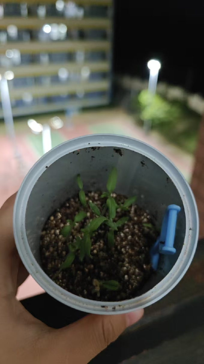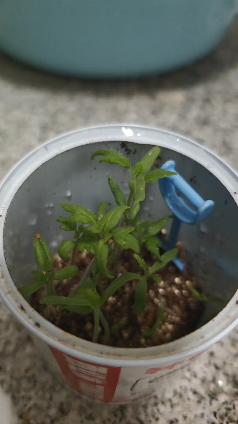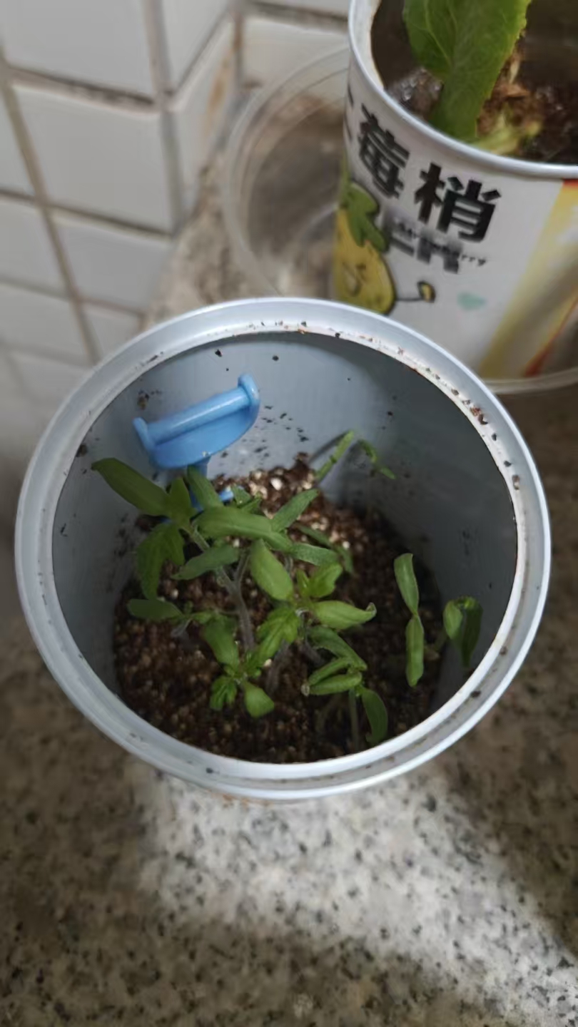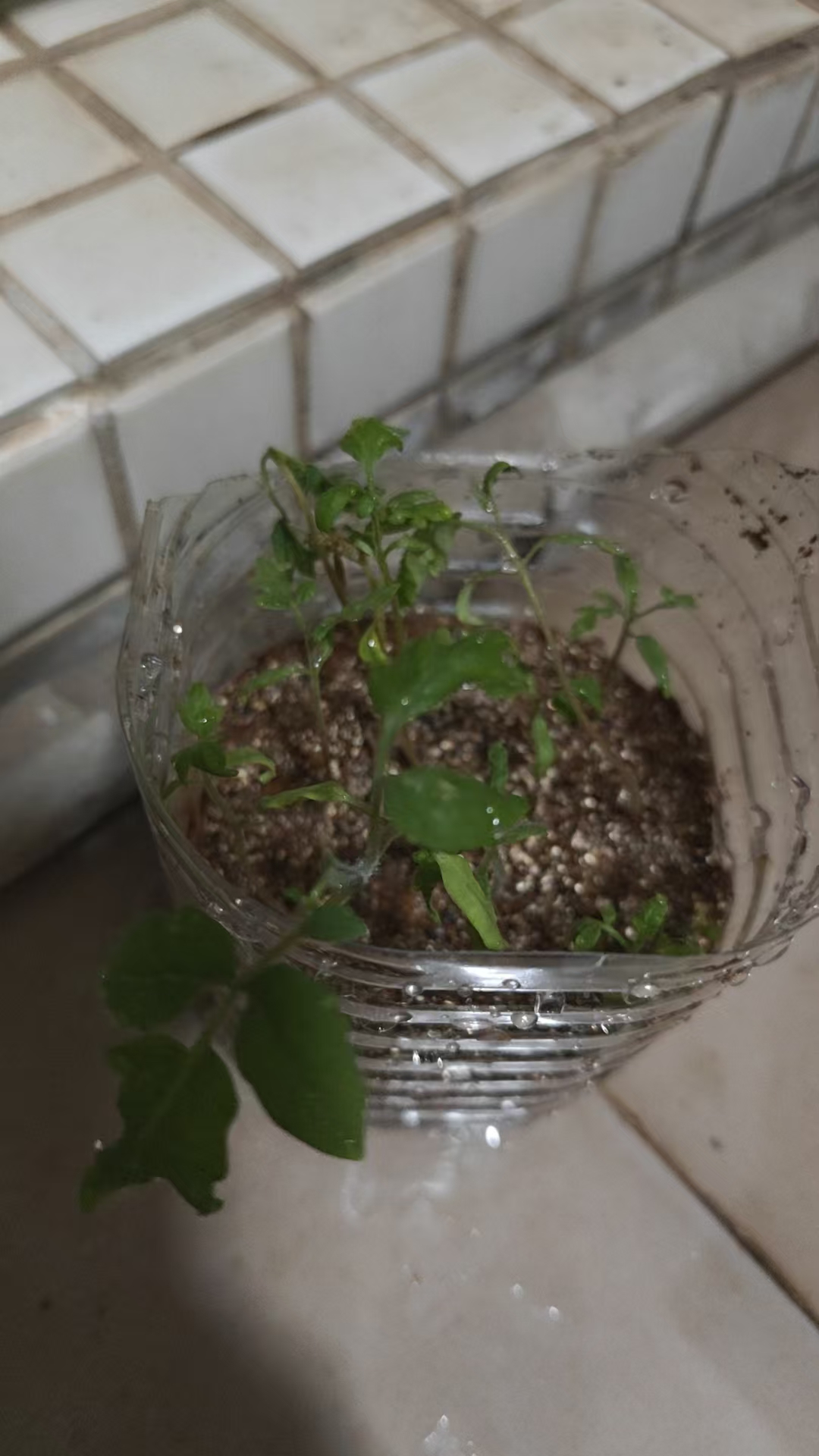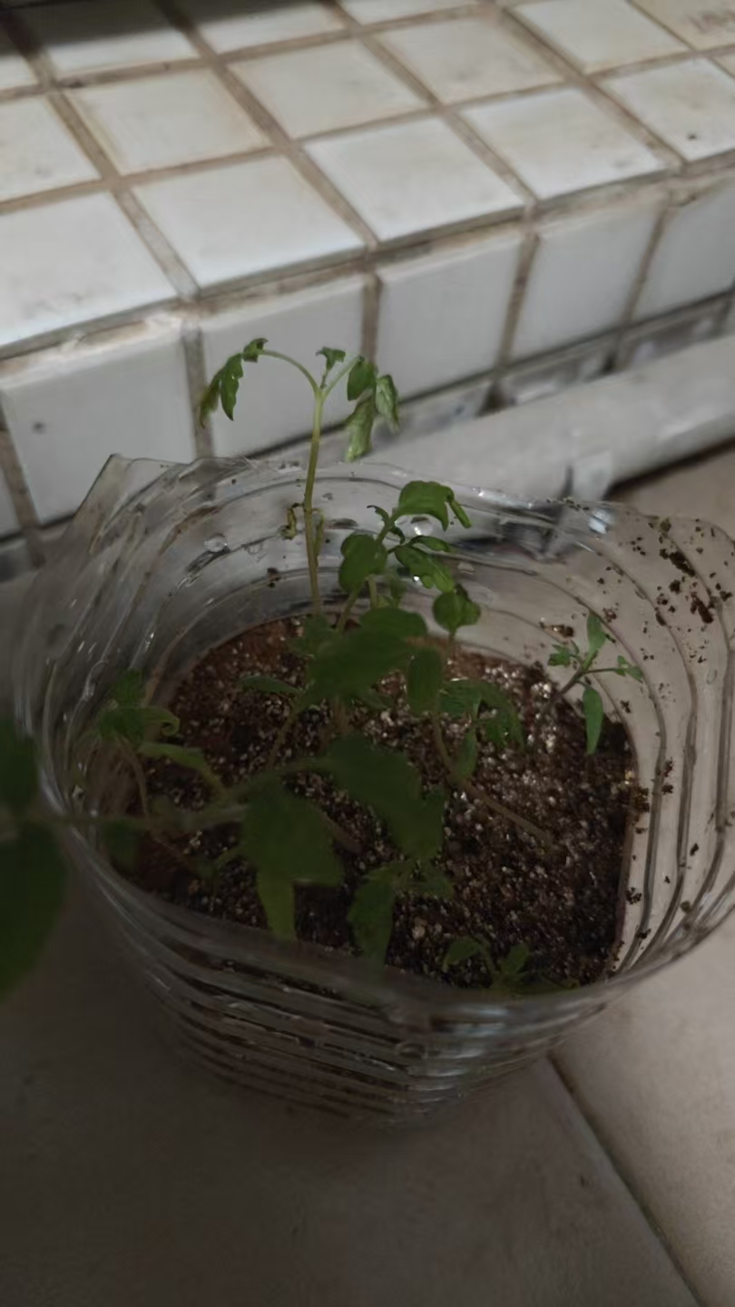 番茄植株较为幼小,叶片翠绿但略显柔弱,在简易容器中扎根生长。期望它能汲取养分,茁壮成长,枝叶繁茂,早日结出饱满诱人的果实。